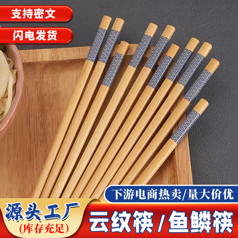锦鲤鱼鳞筷中式高档家用无漆无蜡高颜值耐高温祥云纹印花筷子