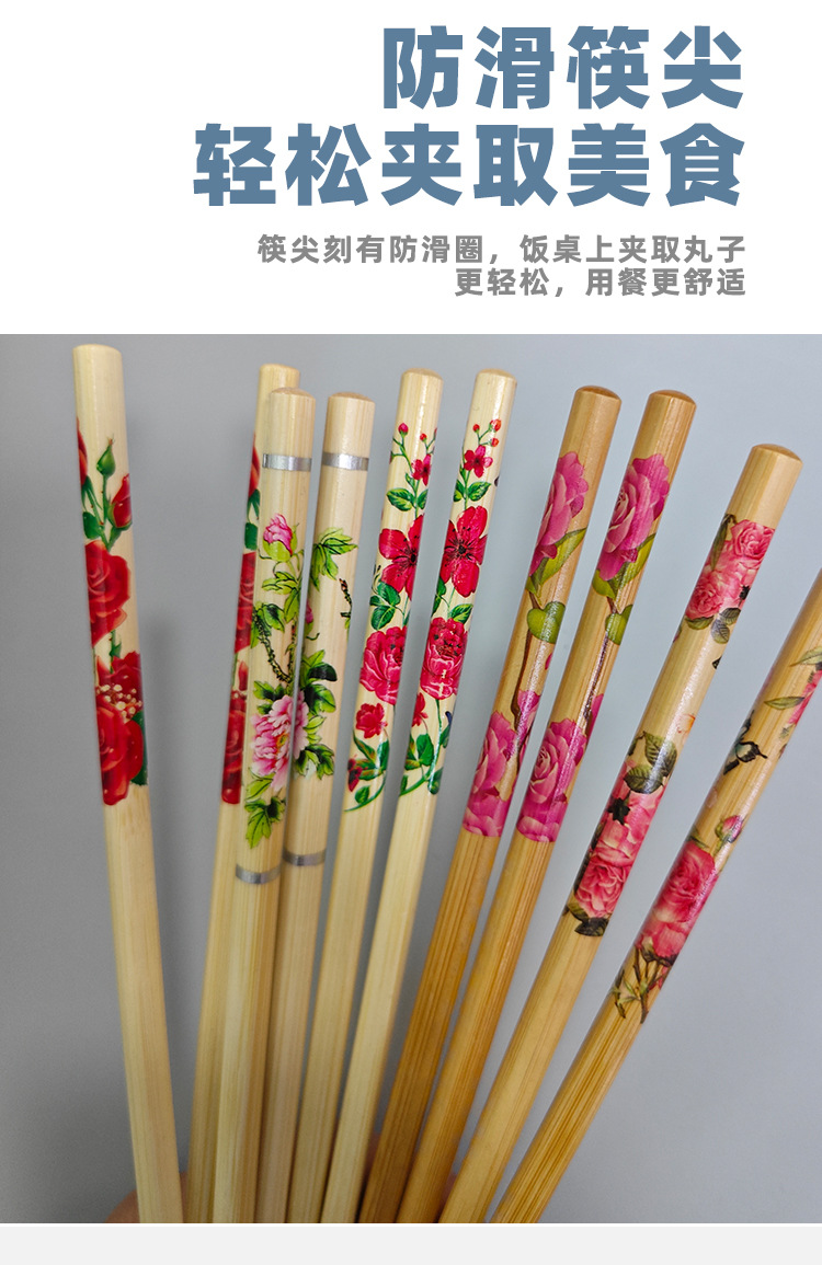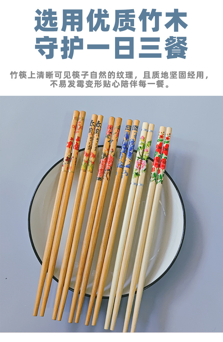 厂家批发阿里山筷子 梅兰竹菊家和万事兴 跑江湖地摊甜竹印花筷