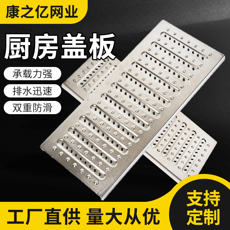 304/201ステンレス鋼グリル板排水溝カバー、キッチン排水溝下水道カバー、明溝雨水グリル