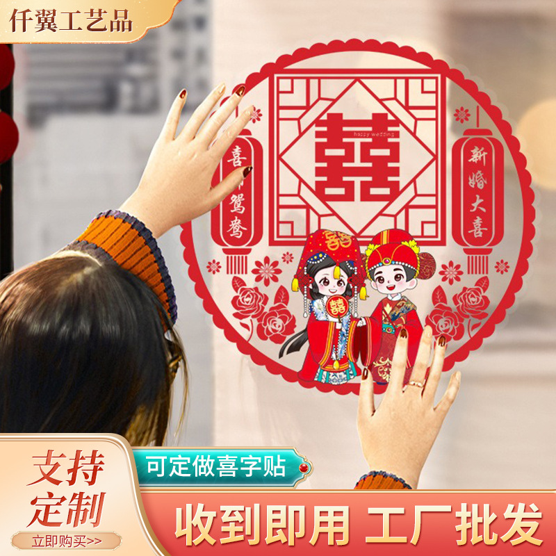 喜字貼結婚専用貼喜字自粘不乾性綿毛のウェディングルームにガラス窓の家電を配置します。
