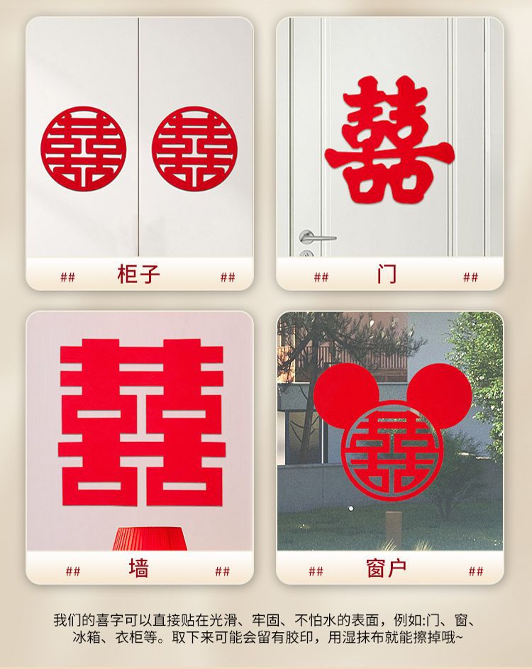 結婚部屋の喜字結婚専用のシールは、自分で植毛して結婚した結婚式にドアと窓の花用品を配置します。