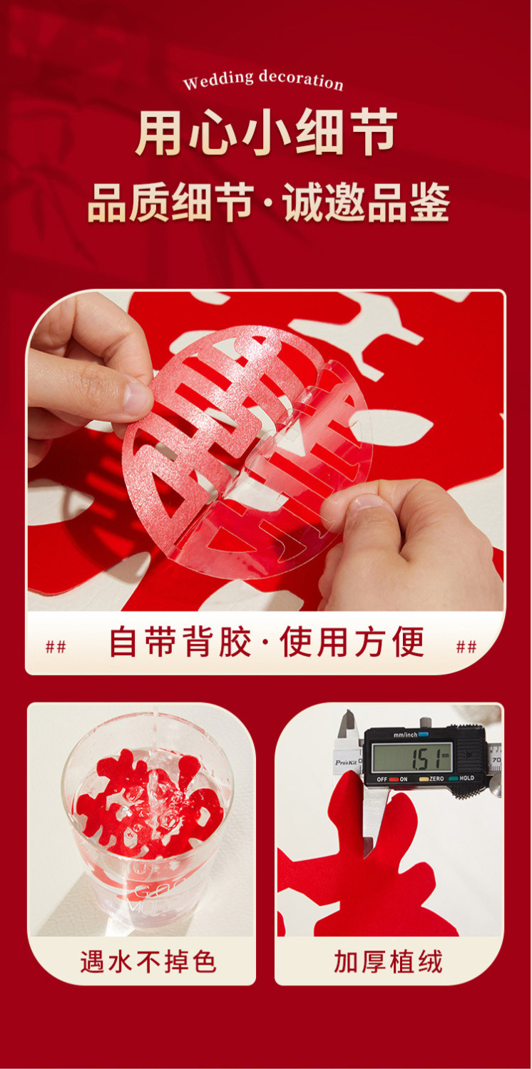 結婚式植毛静電ハッピーワードステッカー装飾家具窓ガラス囍窓花ステッカー結婚式の部屋の装飾用品