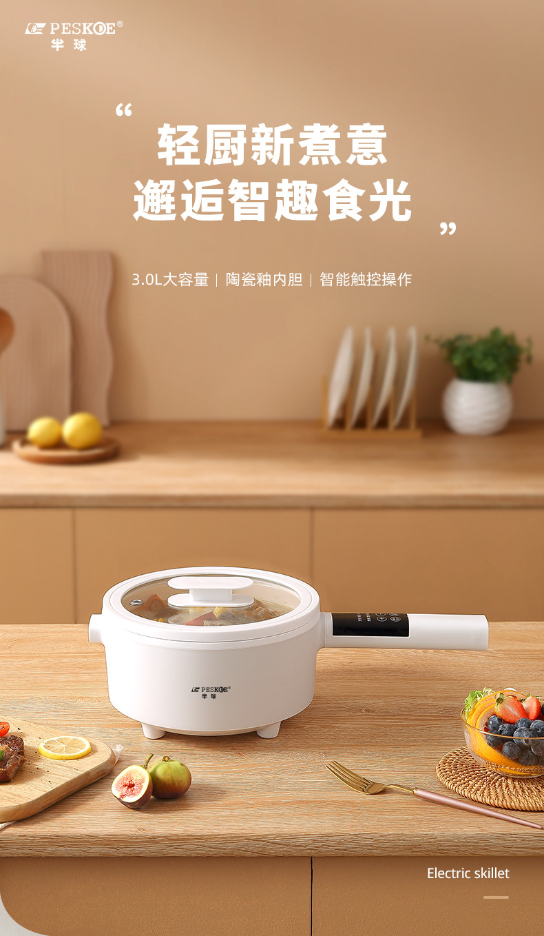 ドイツブランドZemkon電気鍋家庭用一体炒め料理電気炒め鍋は多機能3-4人電気煮鍋にくっつかない