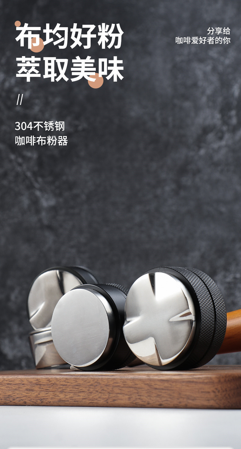咖啡布粉器不锈钢压粉器意式咖啡机三件套装压粉锤可调51/53/58mm
