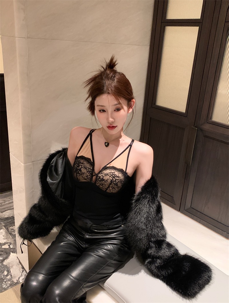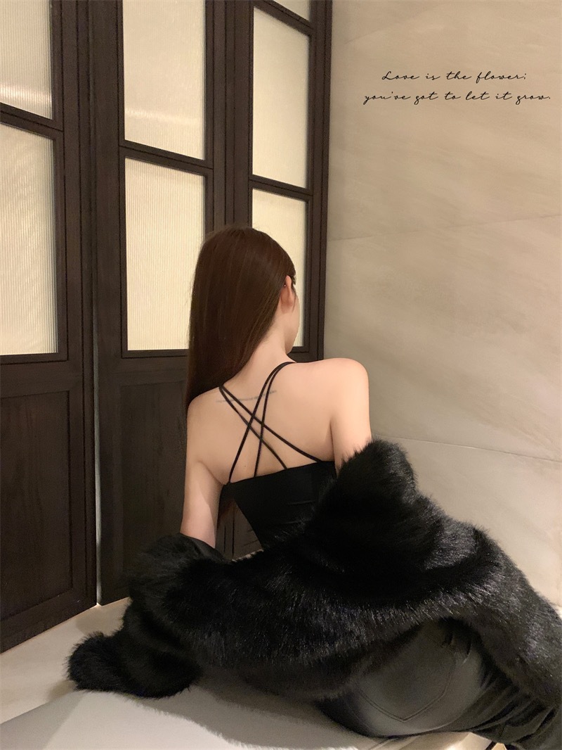 夏のデザイン感純欲風固定胸パッド両肩ベルトベスト女性外着デザイン修身ボトムス