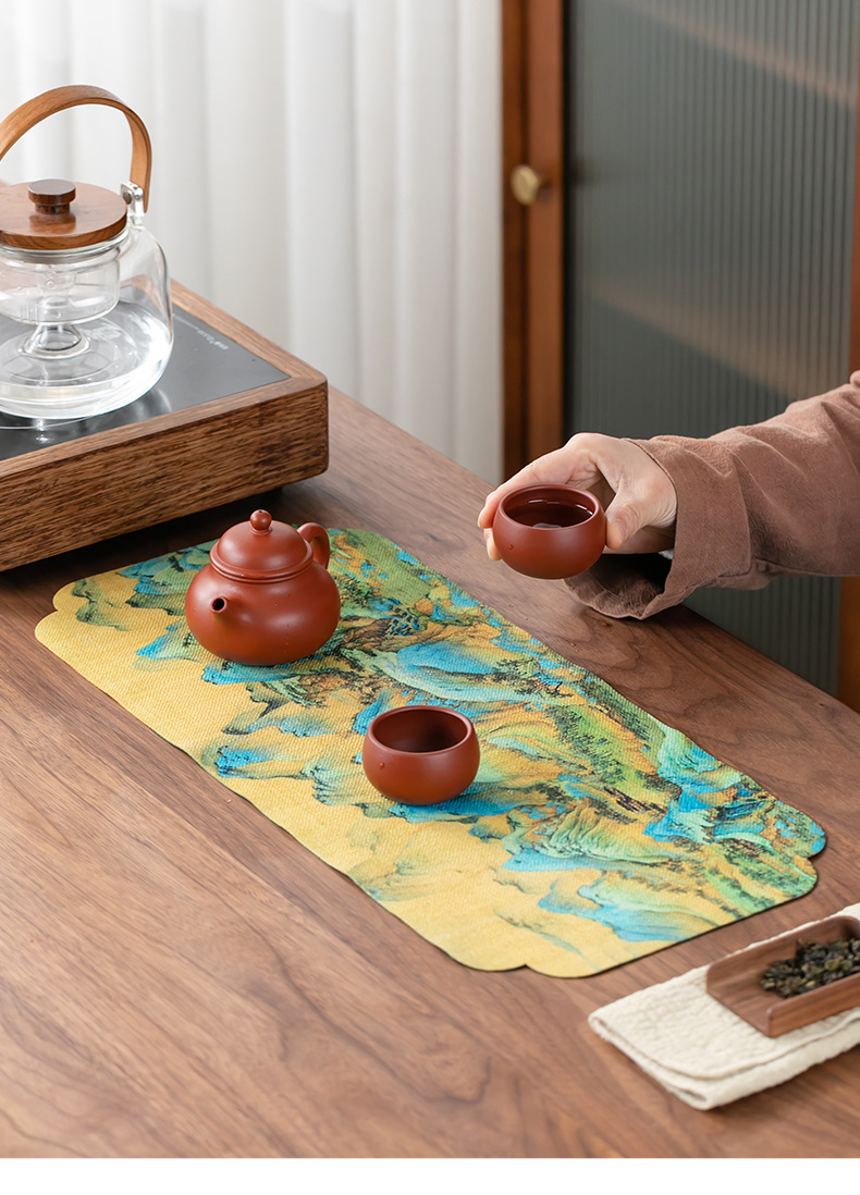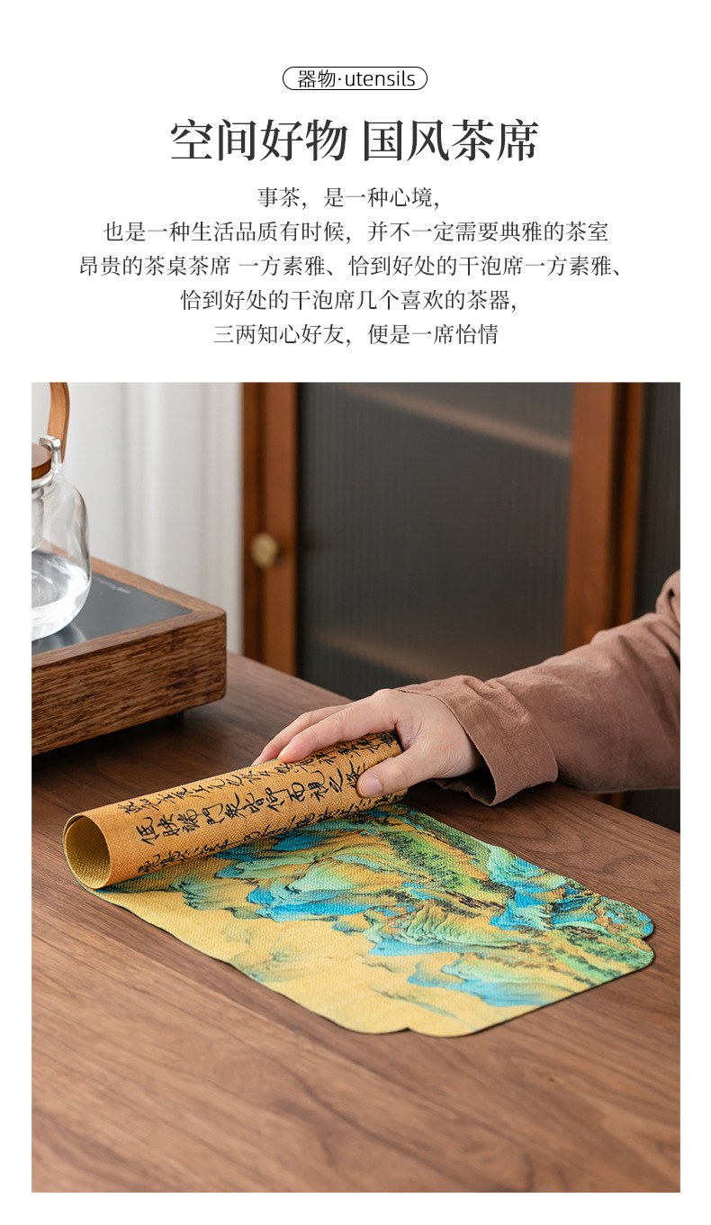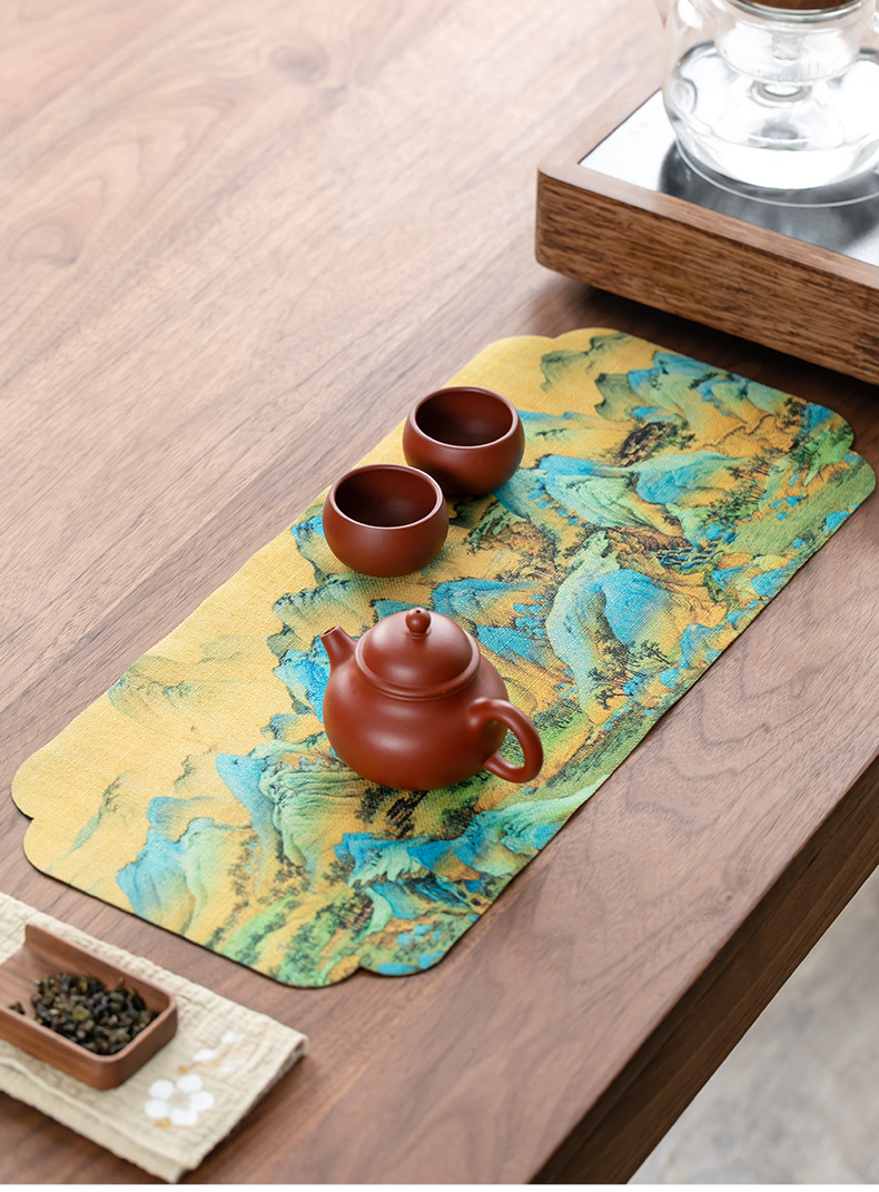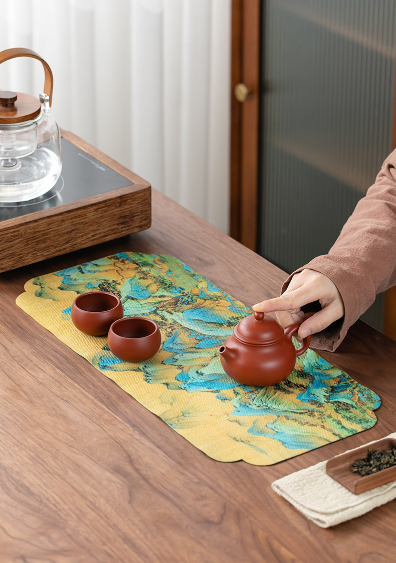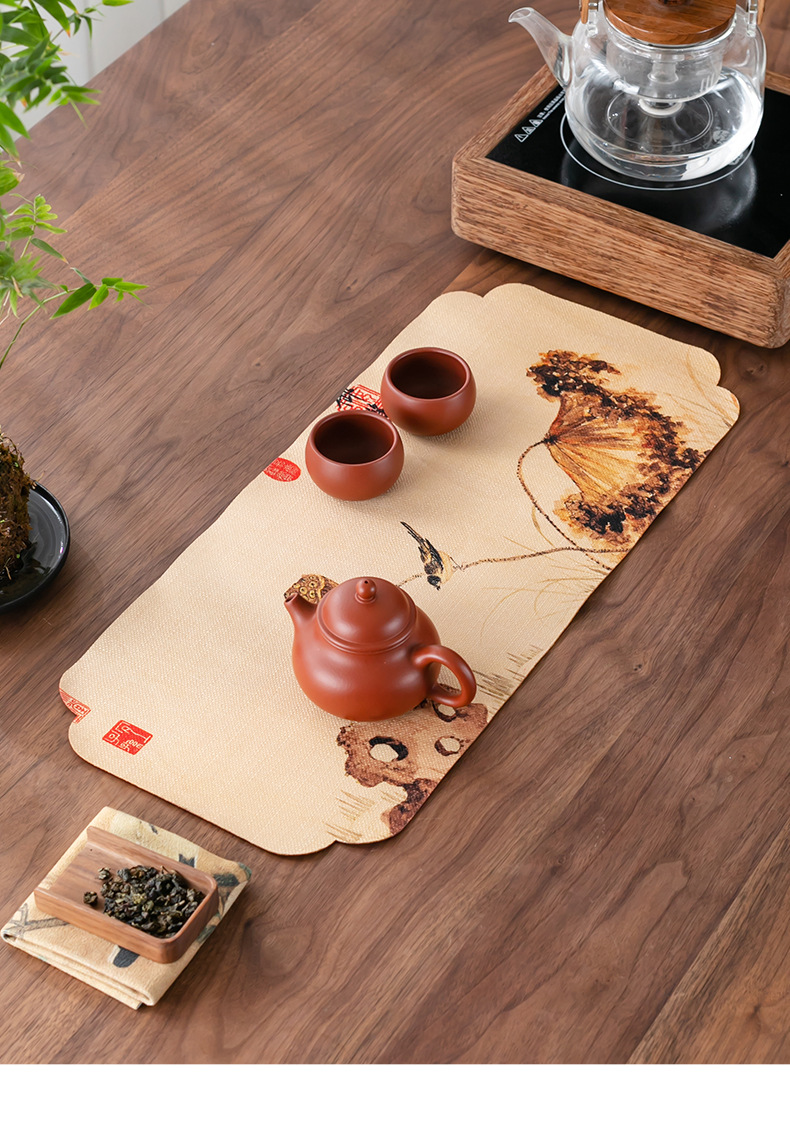茶皿マット茶席防水ティータオル茶布マット乾いた泡マット手描きの茶マット