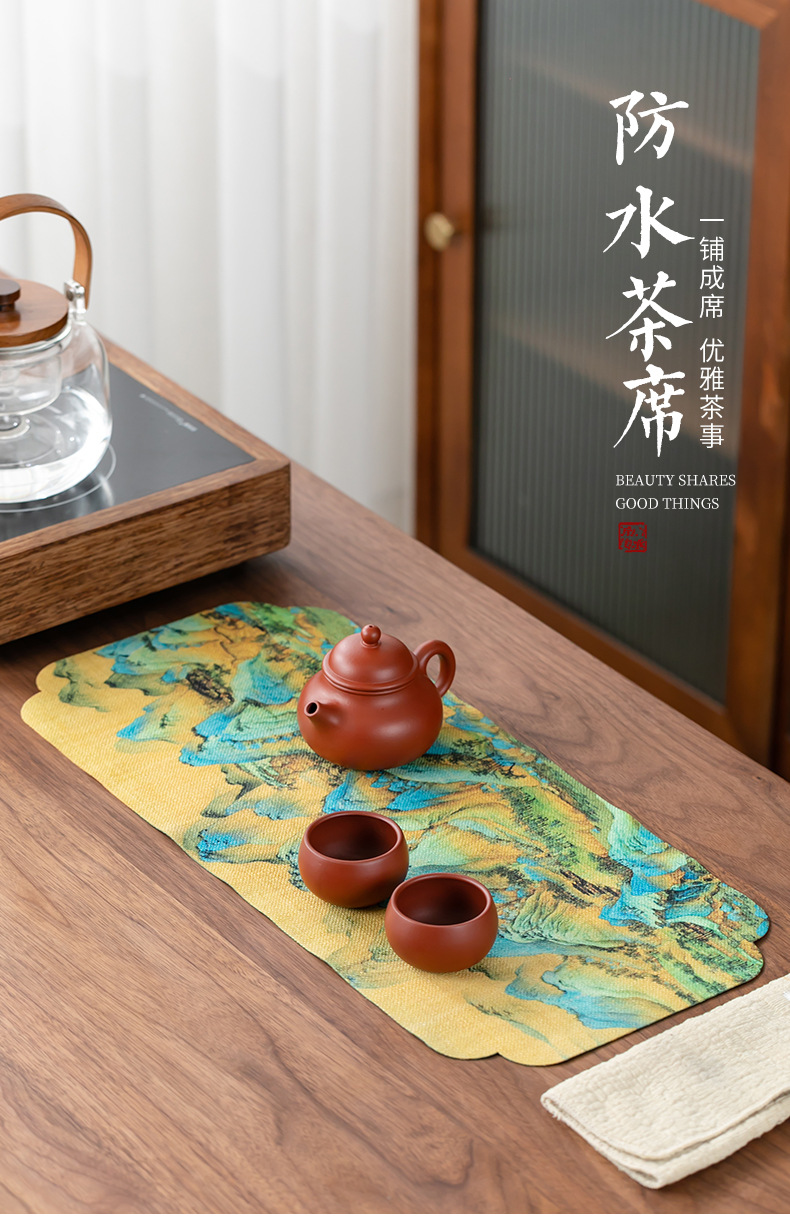 防水ドライティーテーブル両面新中国風テーブル旗禅意茶巾テーブルクロス茶器茶盤茶卓茶道部品