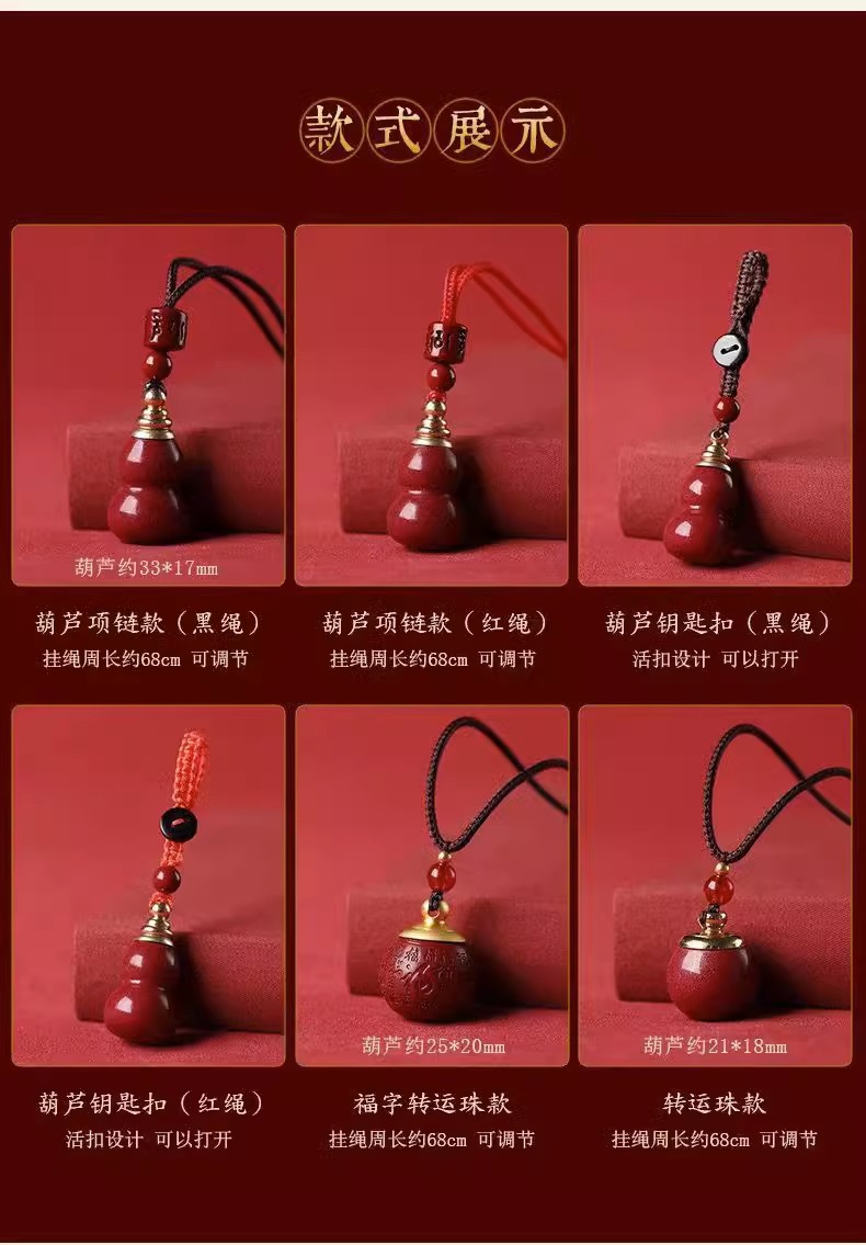朱砂葫芦ペンダント空瓶、紫金砂を入れるのに使用可能、十二支キーホルダー、福禄ネックレス、卸売、開運