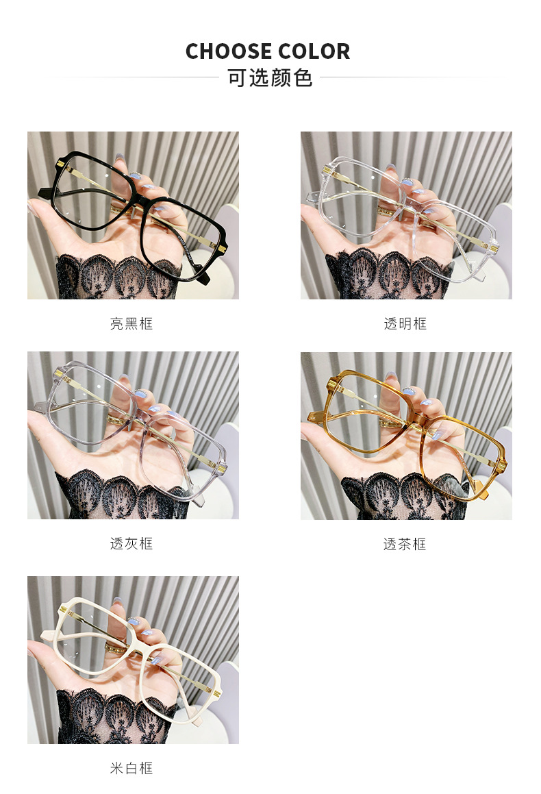 フォトクロミック抗青色光メガネ、無地大型フレーム近視メガネ、ネット有名人のライブブロードキャスト人気の学生完成品近視メガネ