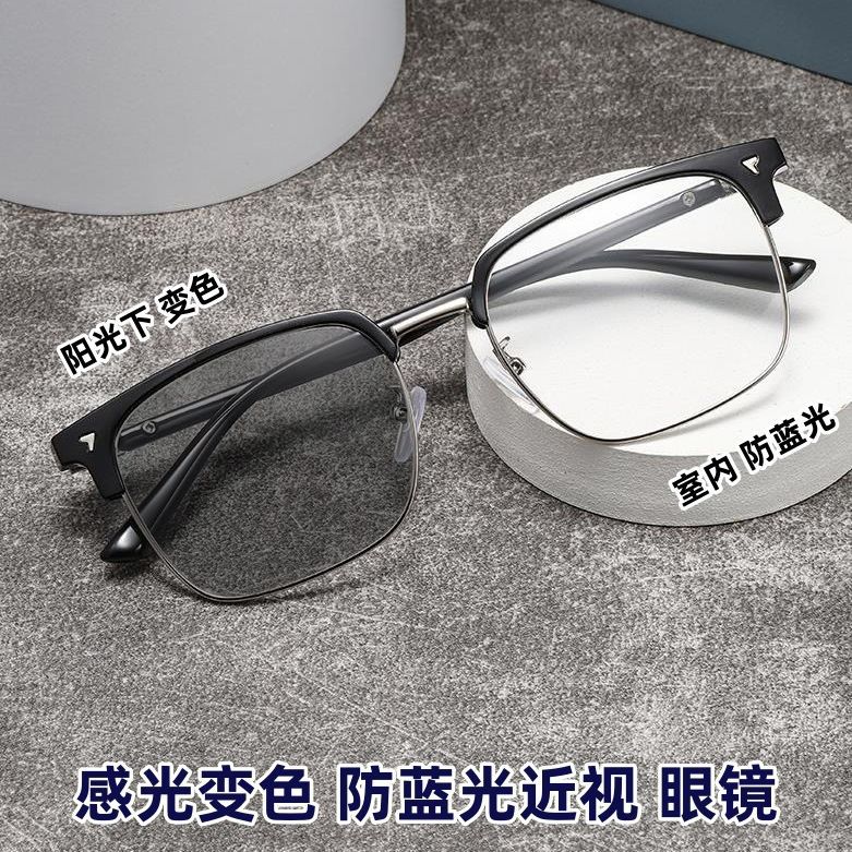 感光変色防止ブルーレイ近視鏡枠半枠眉架痞帅ネット赤レトロ完成品文芸近視鏡