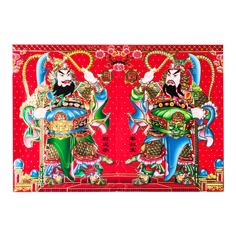 馬年新作金箔入り玄関守護神 春節銅版紙 日月招福守護神年画 卸売業者