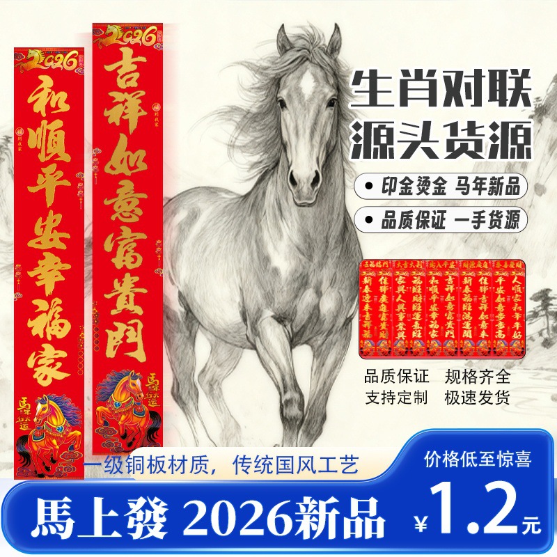 对联2026马年春联定制加厚铜板纸年货摆摊爆款春节用品门贴门联
