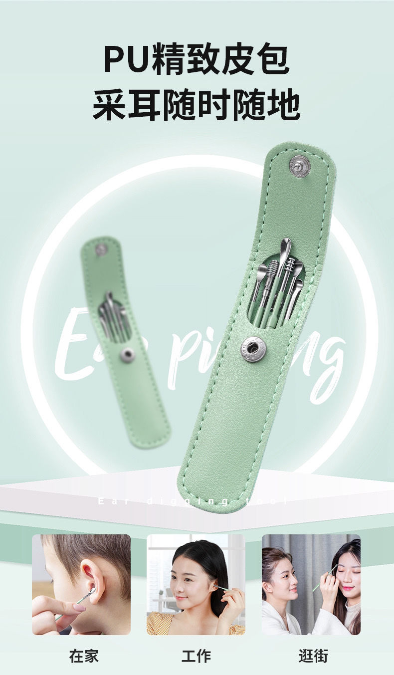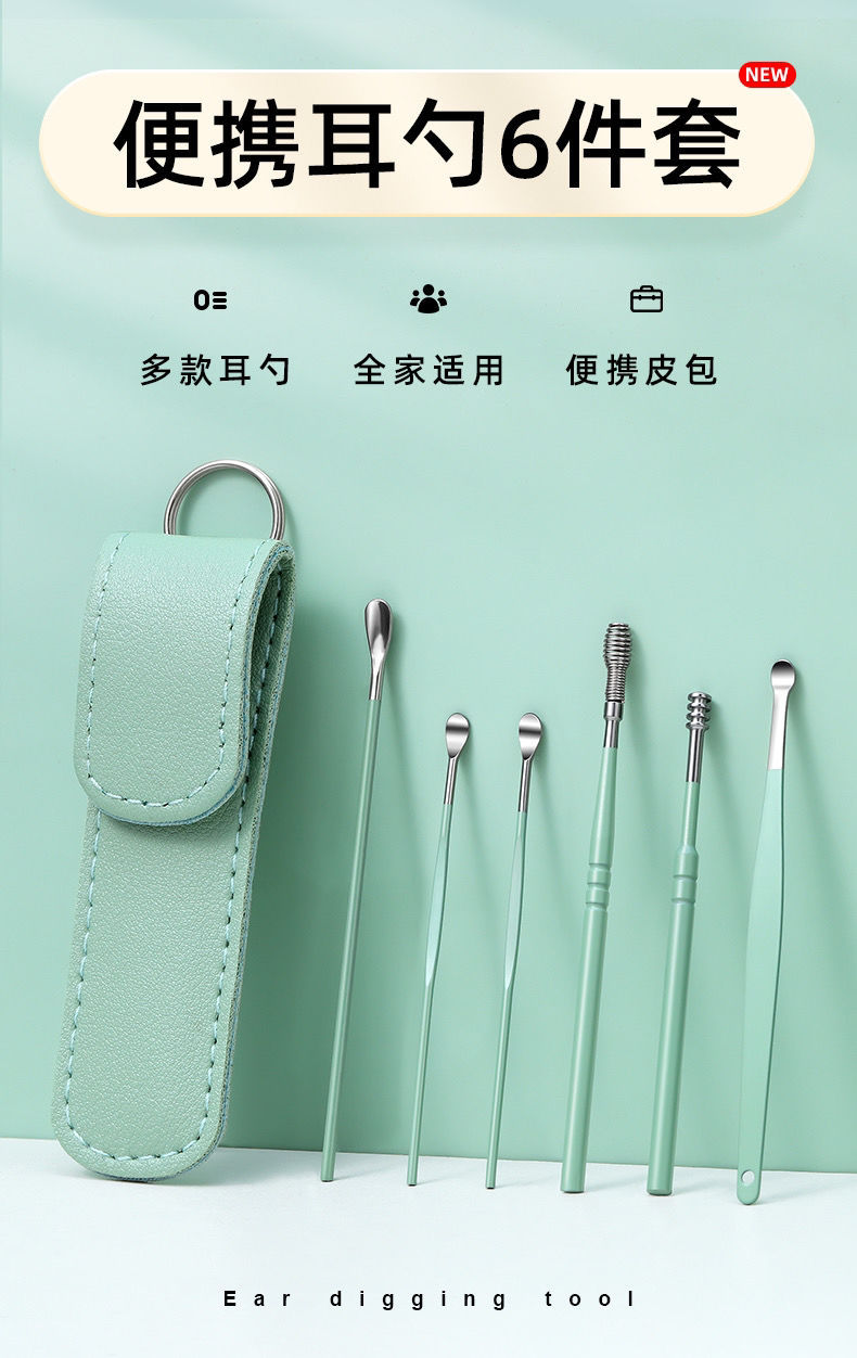 仕様 薄緑色-携帯耳さじ6点セット,浅桃粉-携帯耳スプーン6点セット,浅霧青-携帯耳スプーン6点セット,黄色の普通のセット-携帯耳スプーン6点セット,黒セットの普通タイプ-携帯耳スプーン6セット