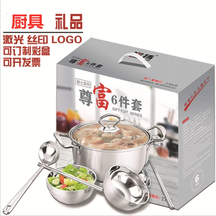 開業会社の活動調理器具の贈り物は人の年会の4s店の販売部のステンレスの鍋のセットを贈呈します。制log