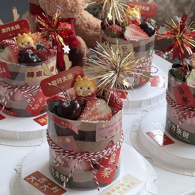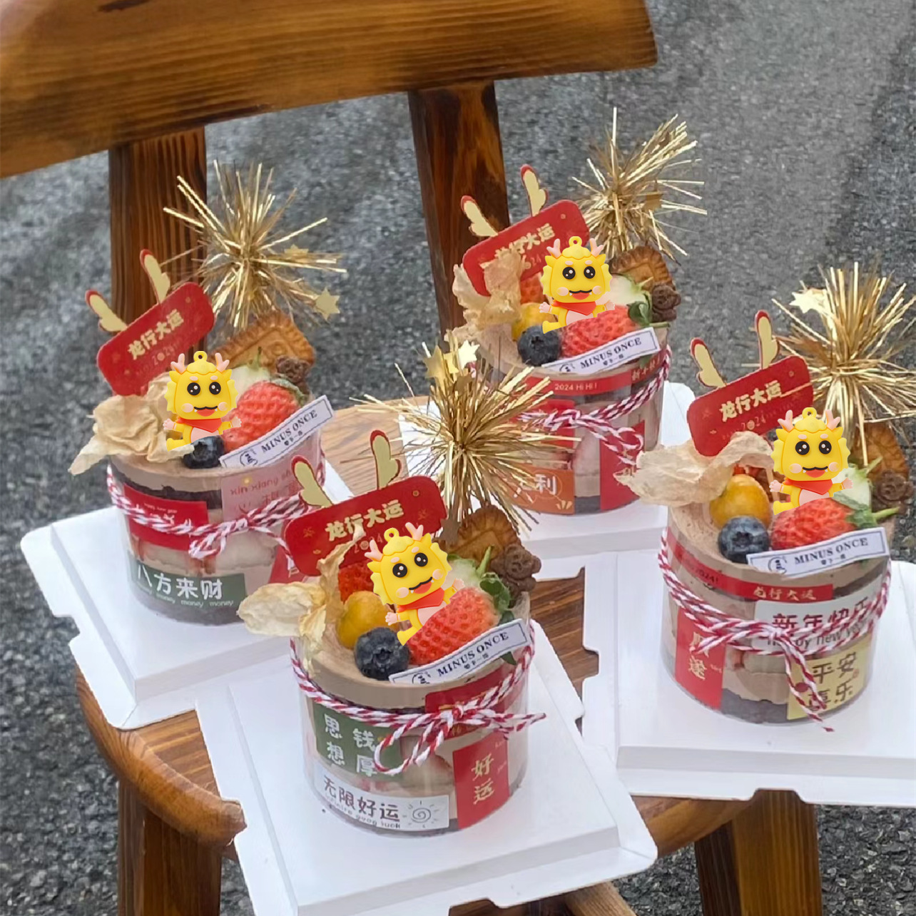 2024年新年龍年ケーキ置物萌え龍送福龍行大運焙煎プラグインに赤いシールをつけた