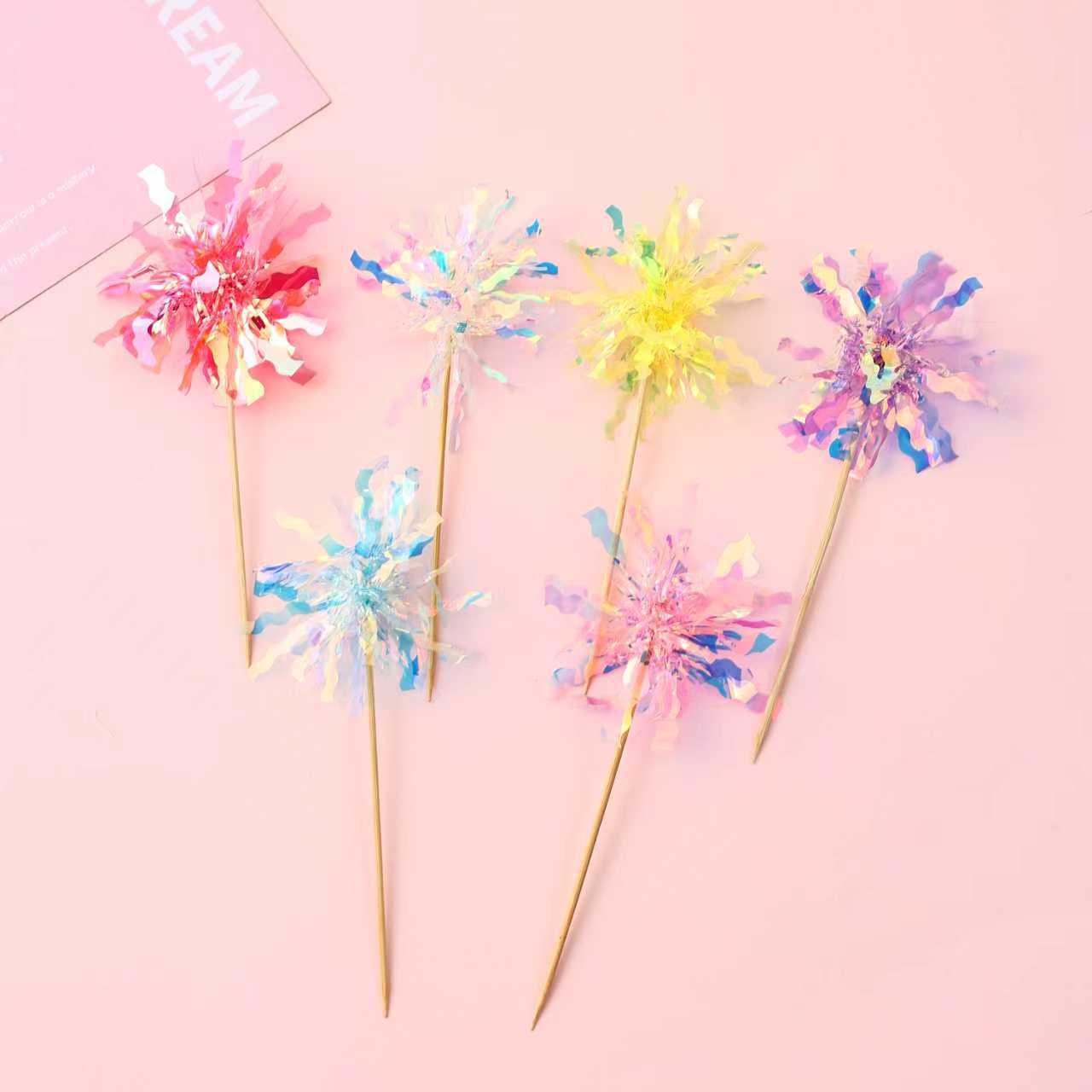 創意ins風のカラフルなエッジケーキの装飾高密度のカラフルな雨の花火の誕生日パーティーは5つのセットを挿します。