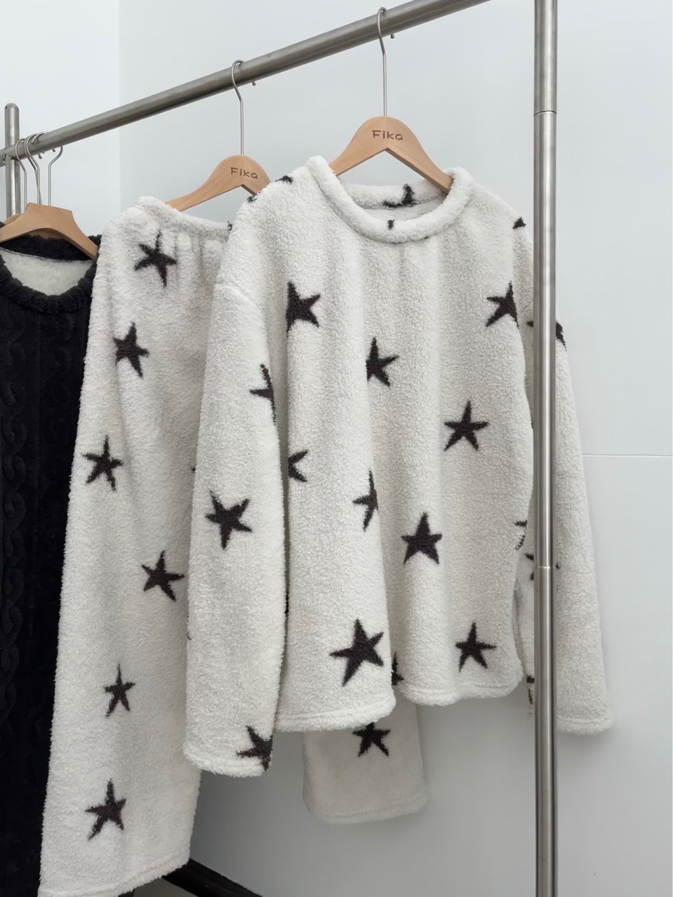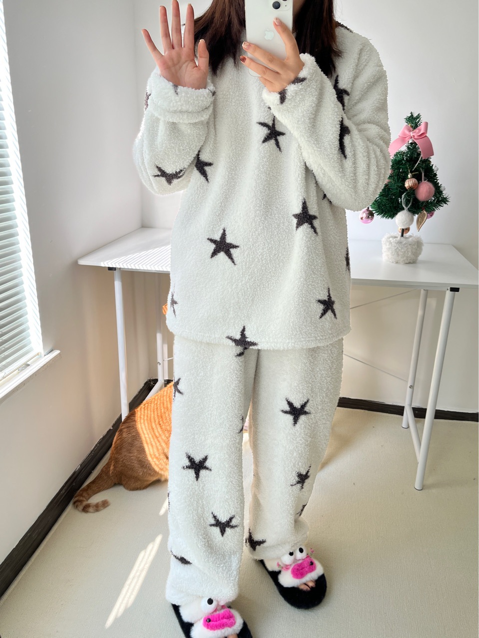 星のサンゴの綿毛の秋冬の保温の家の服のパジャマのスーツは腰を緩めてゆったりとしています。
