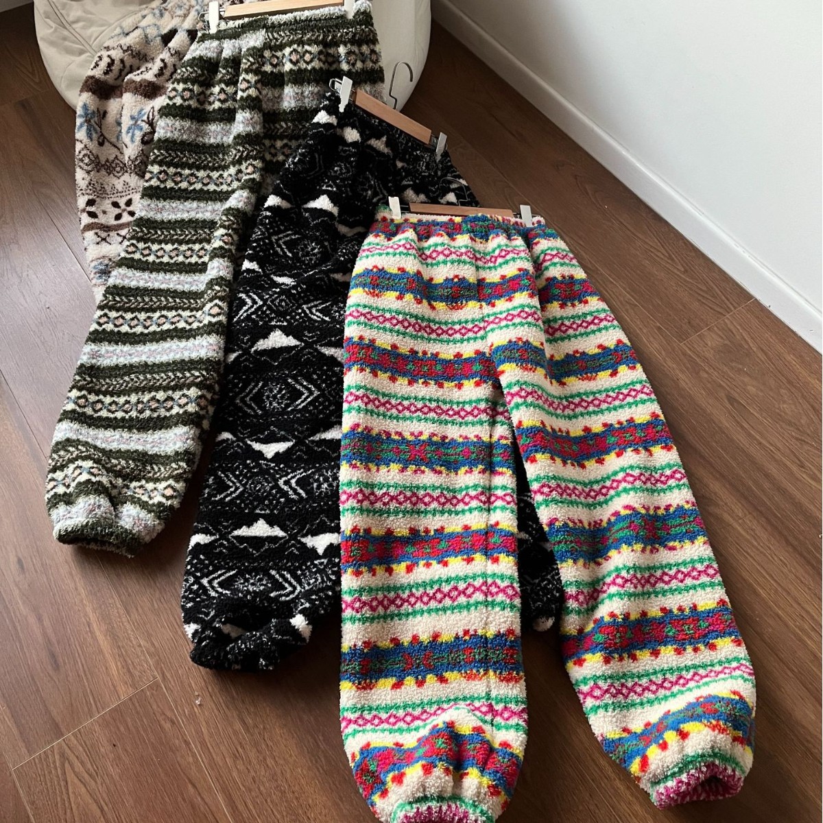 【鸿楠】圣诞费尔岛加厚米粒绒长裤宽松可爱少女家居裤可外穿保暖