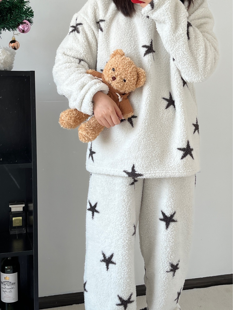 鸿楠实拍米粒绒睡衣女秋冬季珊瑚绒加厚加绒可爱家居服套装可外穿