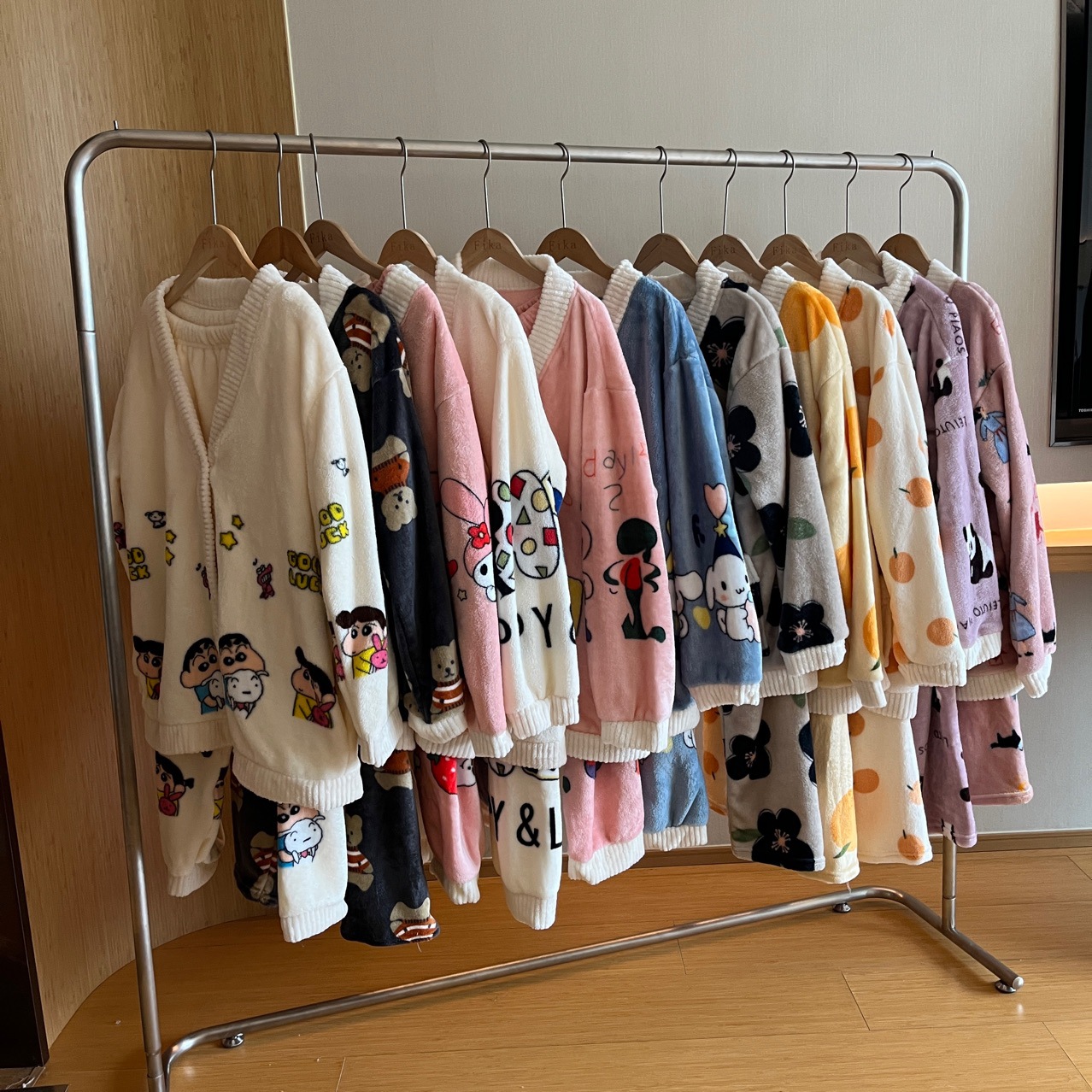 フランネルパジャマセットゆったりとした快適な保温パジャマホームウェアセット秋冬アニメかわいいパジャマ