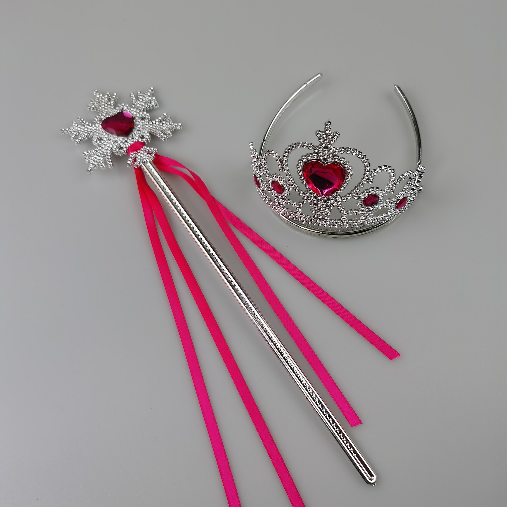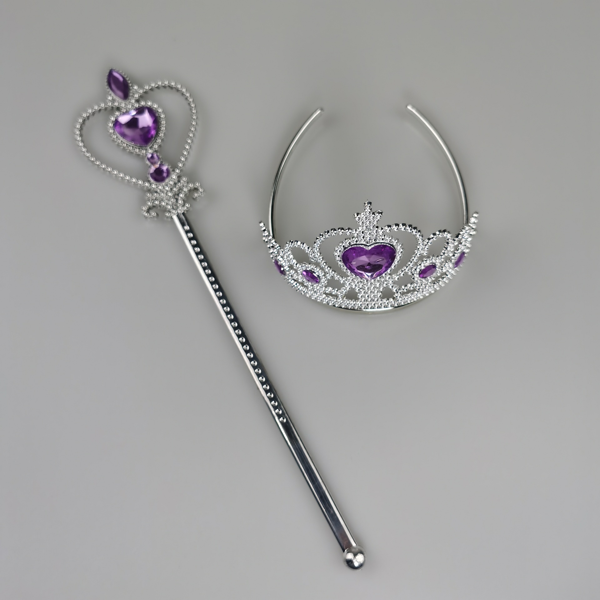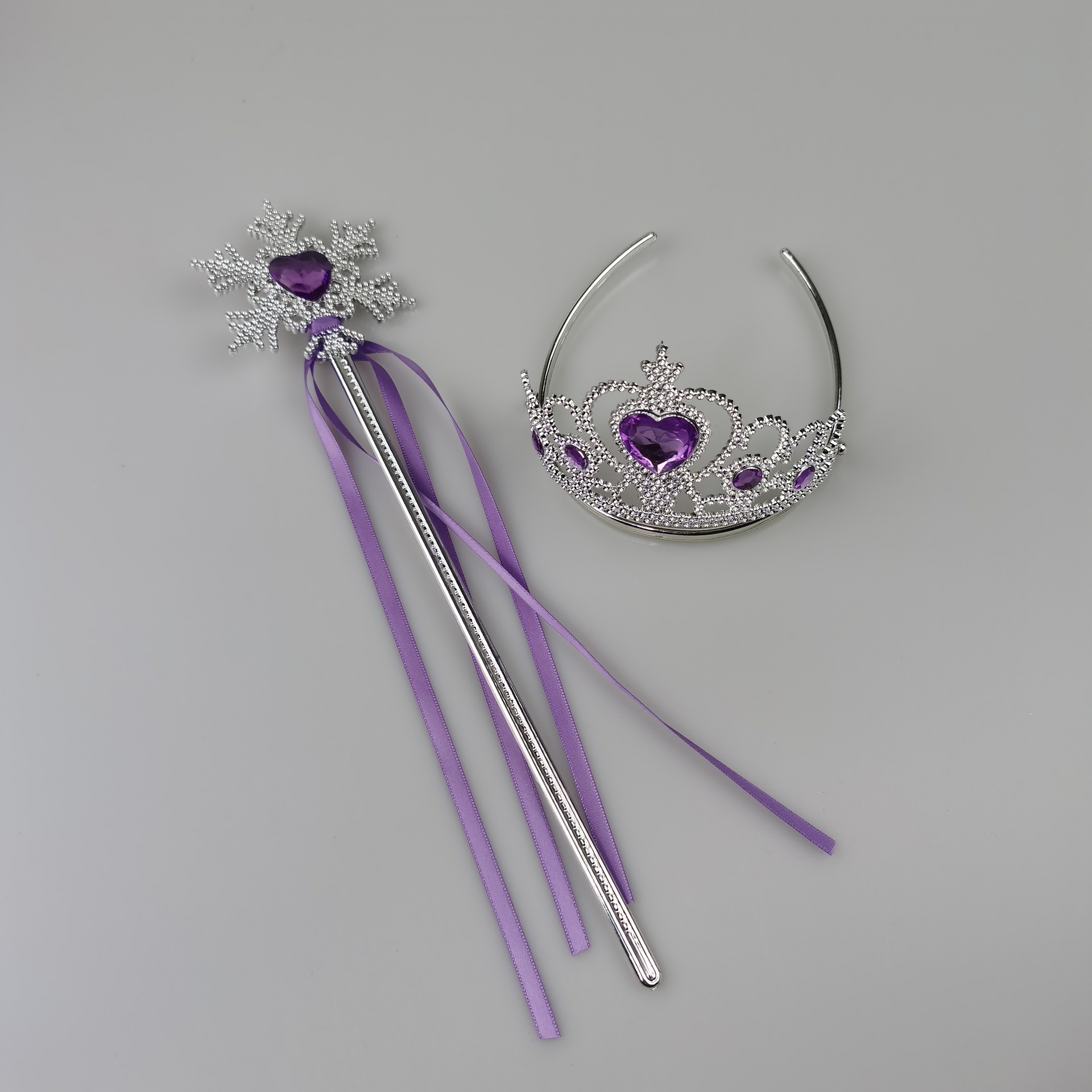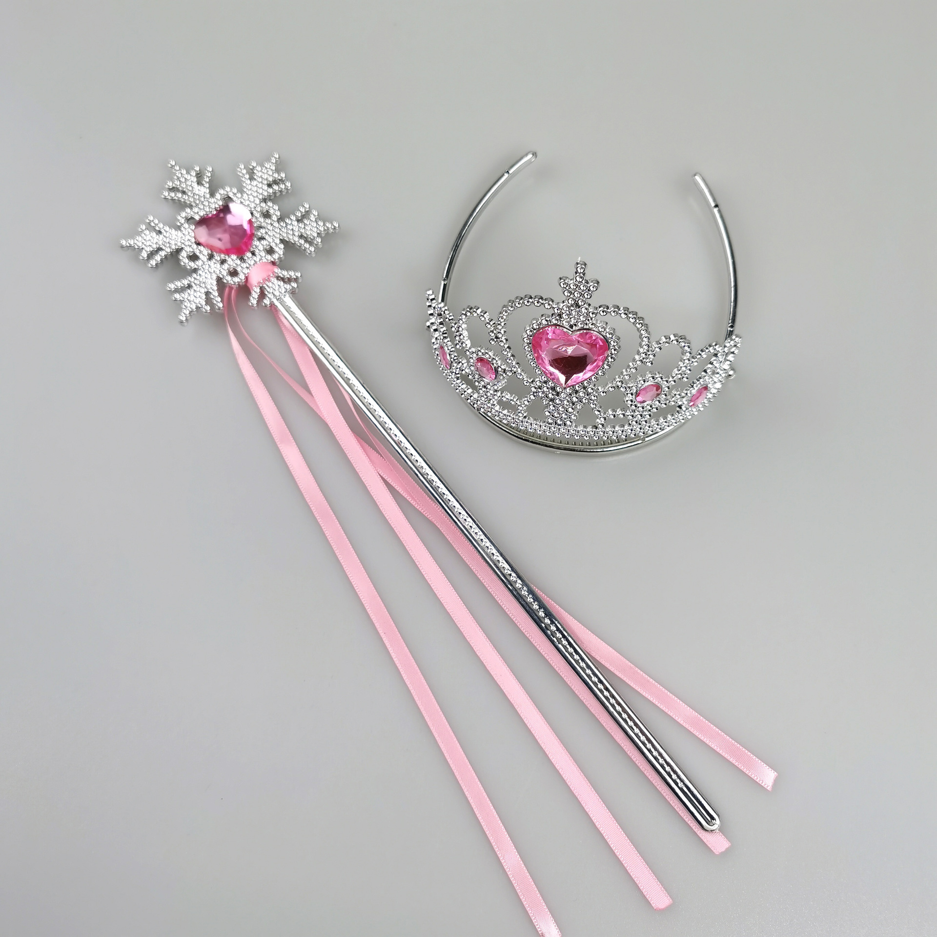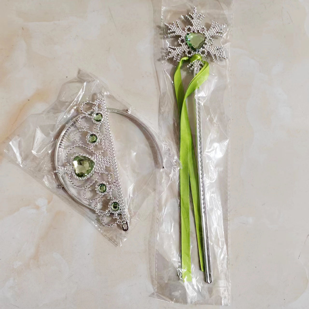 白雪姫cosはパーティーのキャラクターを飾って金色の王冠の魔法の棒のかつらの手袋の蝶結びのセットを演じます。