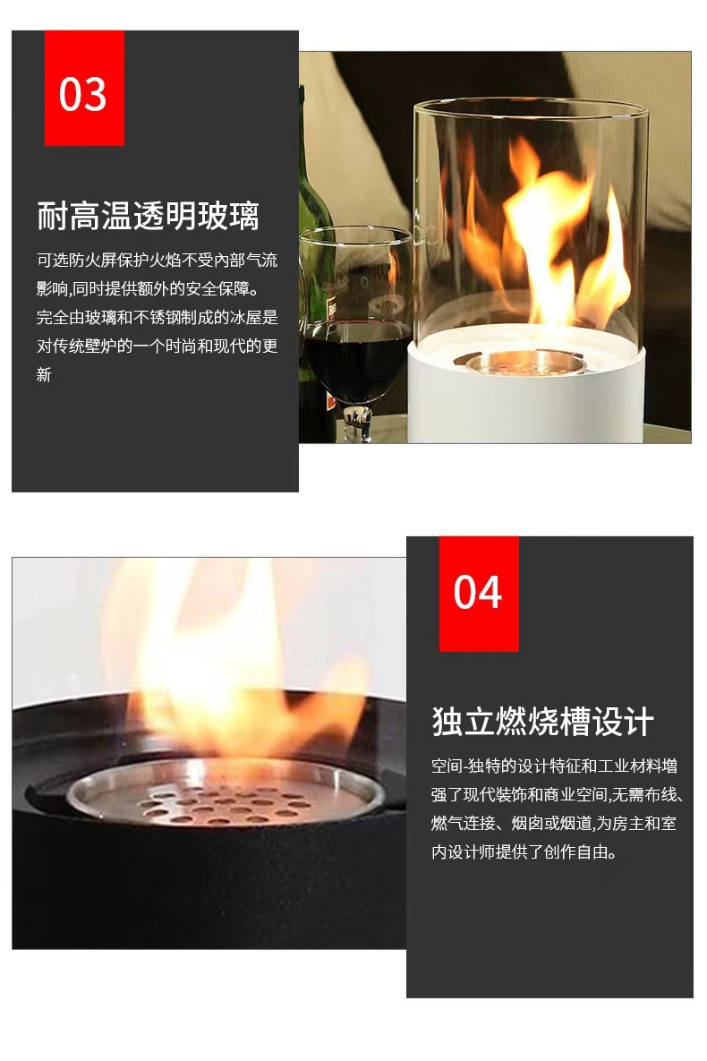 アルコール暖炉、本物の炎で暖める、屋内外兼用、卓上、丸型ガラス、ステンレス製装飾暖炉、ヨーロピアンスタイル、シンプル