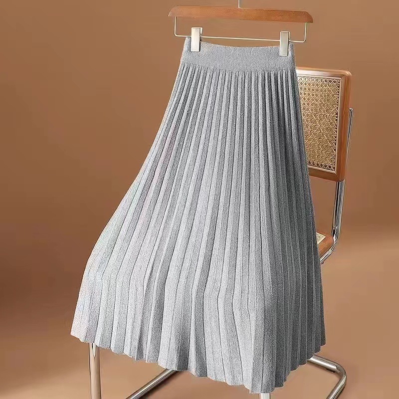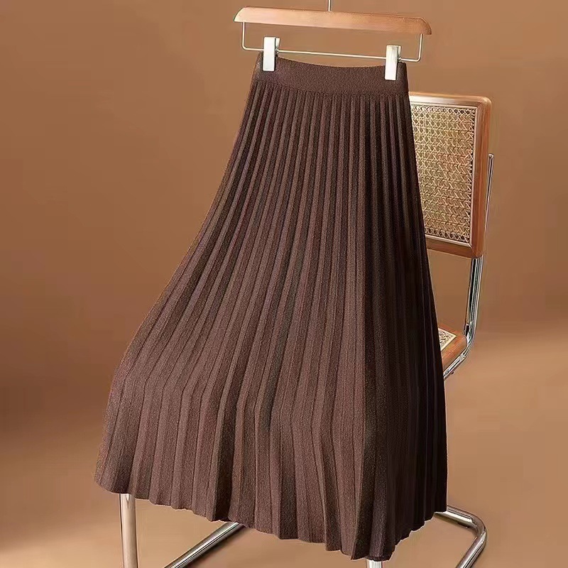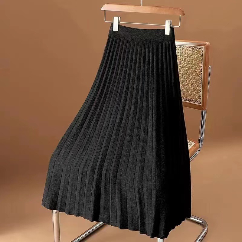 软糯糯松紧腰百褶针织半身裙女2025秋冬季高腰垂感a字中长裙子厚