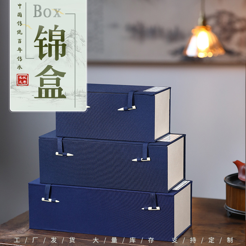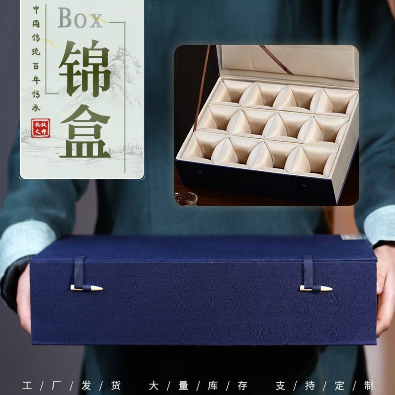 青布多杯錦箱 布製蓋付き錦箱 紫砂壺 建盏ギフトボックス 印鑑古玩収納錦箱