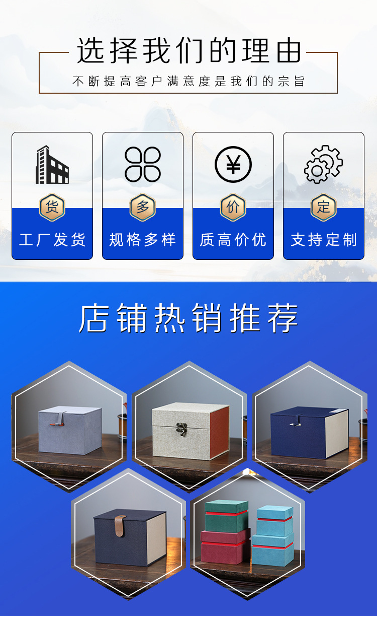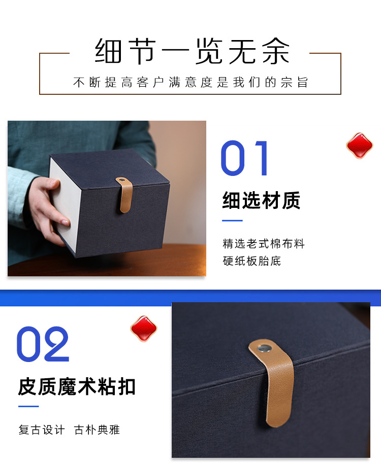 布艺铆钉锦盒建盏主人杯礼品盒印章文玩首饰魔术贴皮扣包装盒