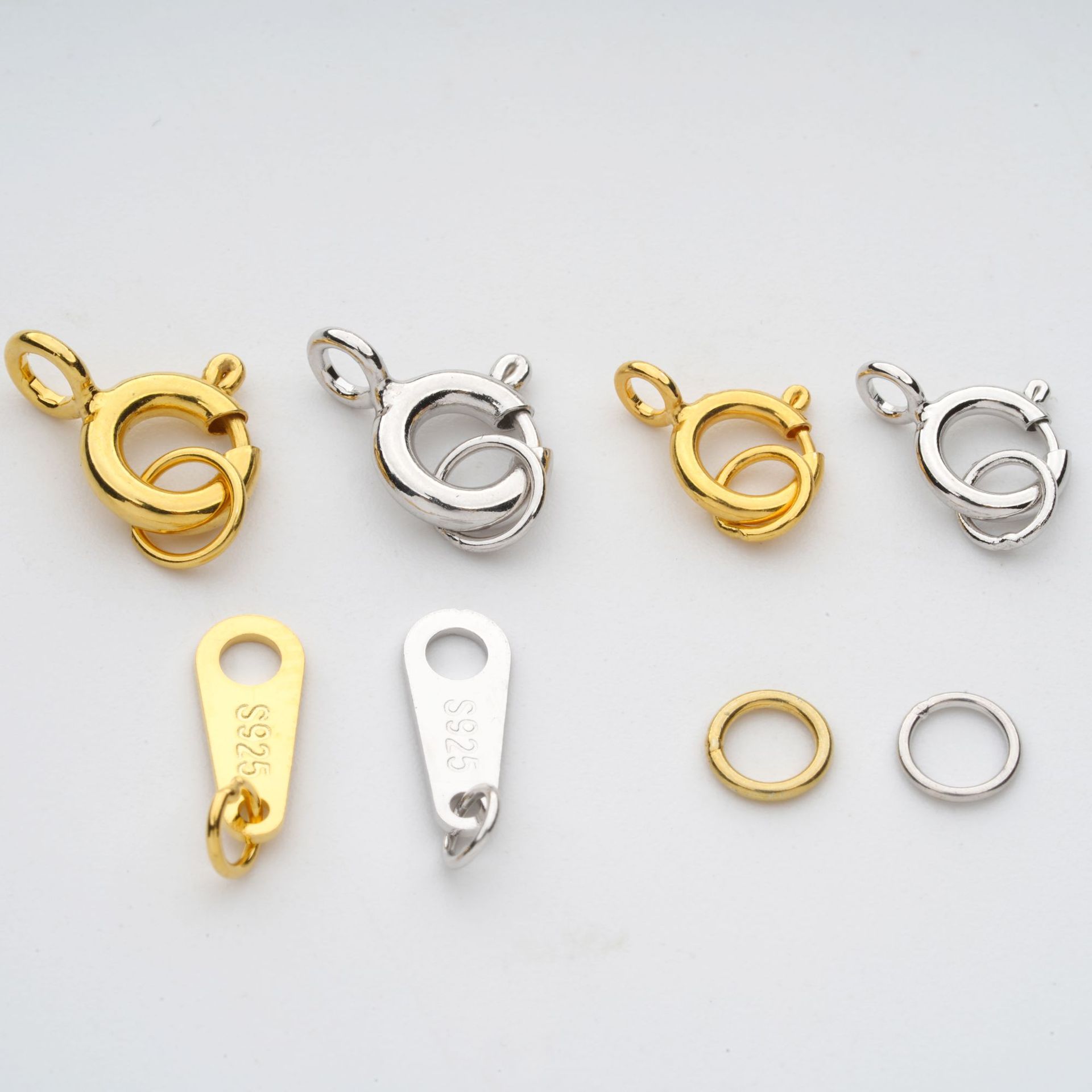 S925銀部品スプリングバックル日本片閉口リングDIY部品工場直売セット