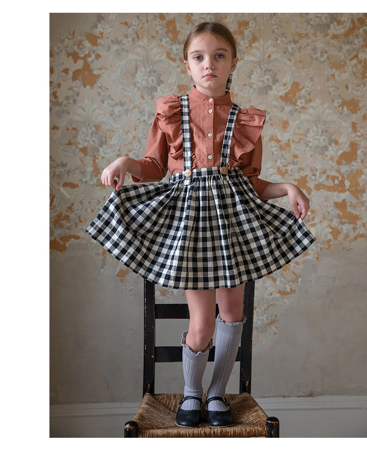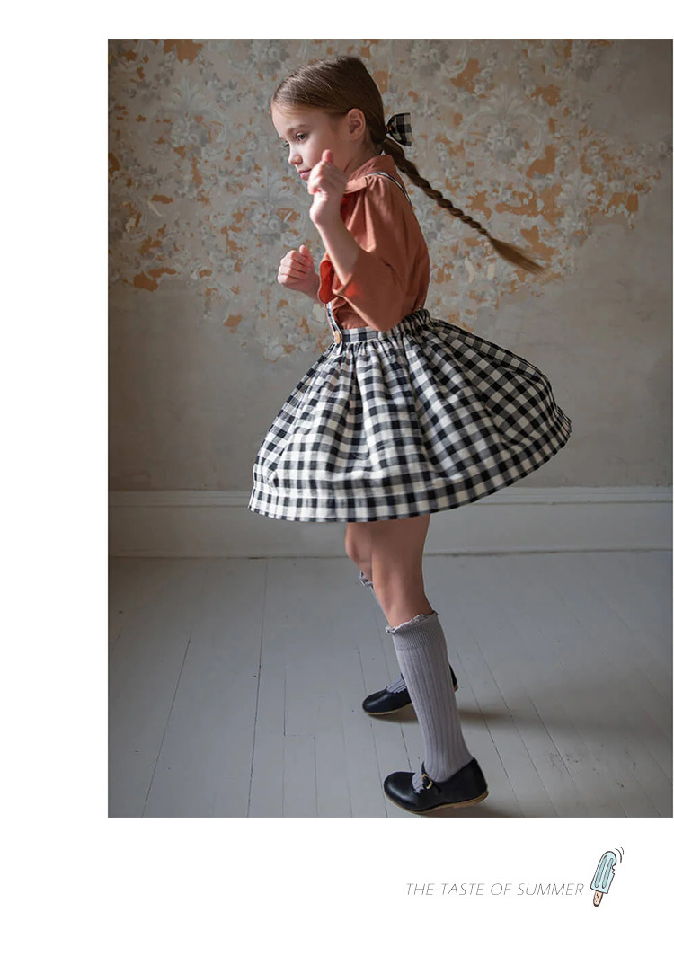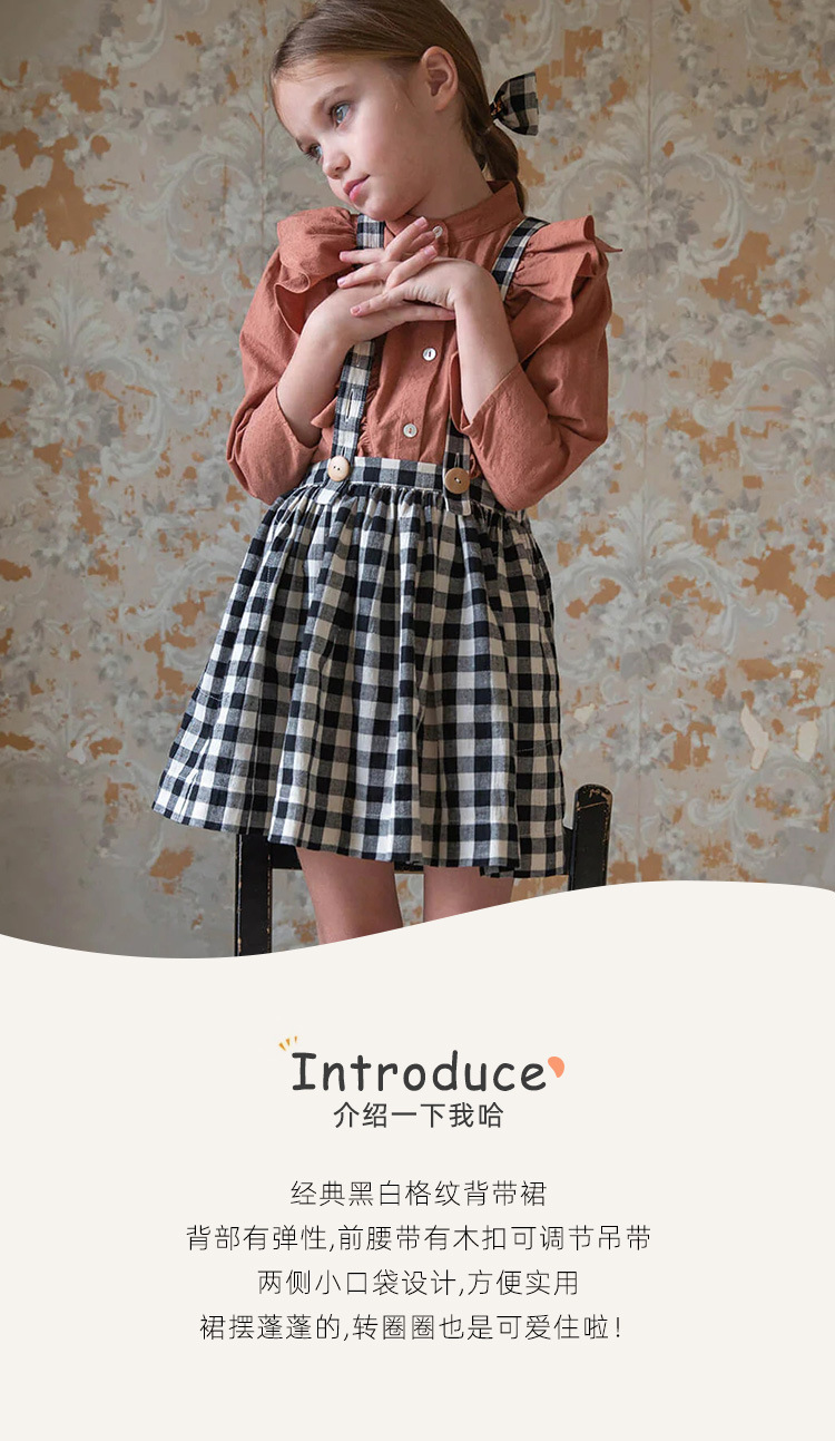 2025 新しい子供の古典的な黒と白のチェック柄サスペンダースカート調節可能なサスペンダー A ラインチュチュスカート女の赤ちゃんスカート