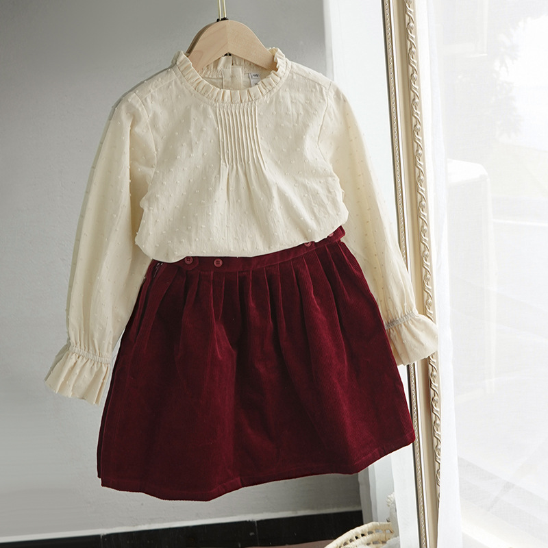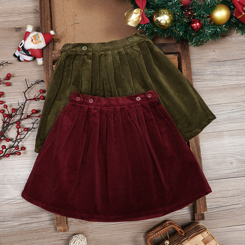 子供コーデュロイスカート 2025 春と秋の新レトロスカート子供服新年ウエストプリーツ多用途スカート