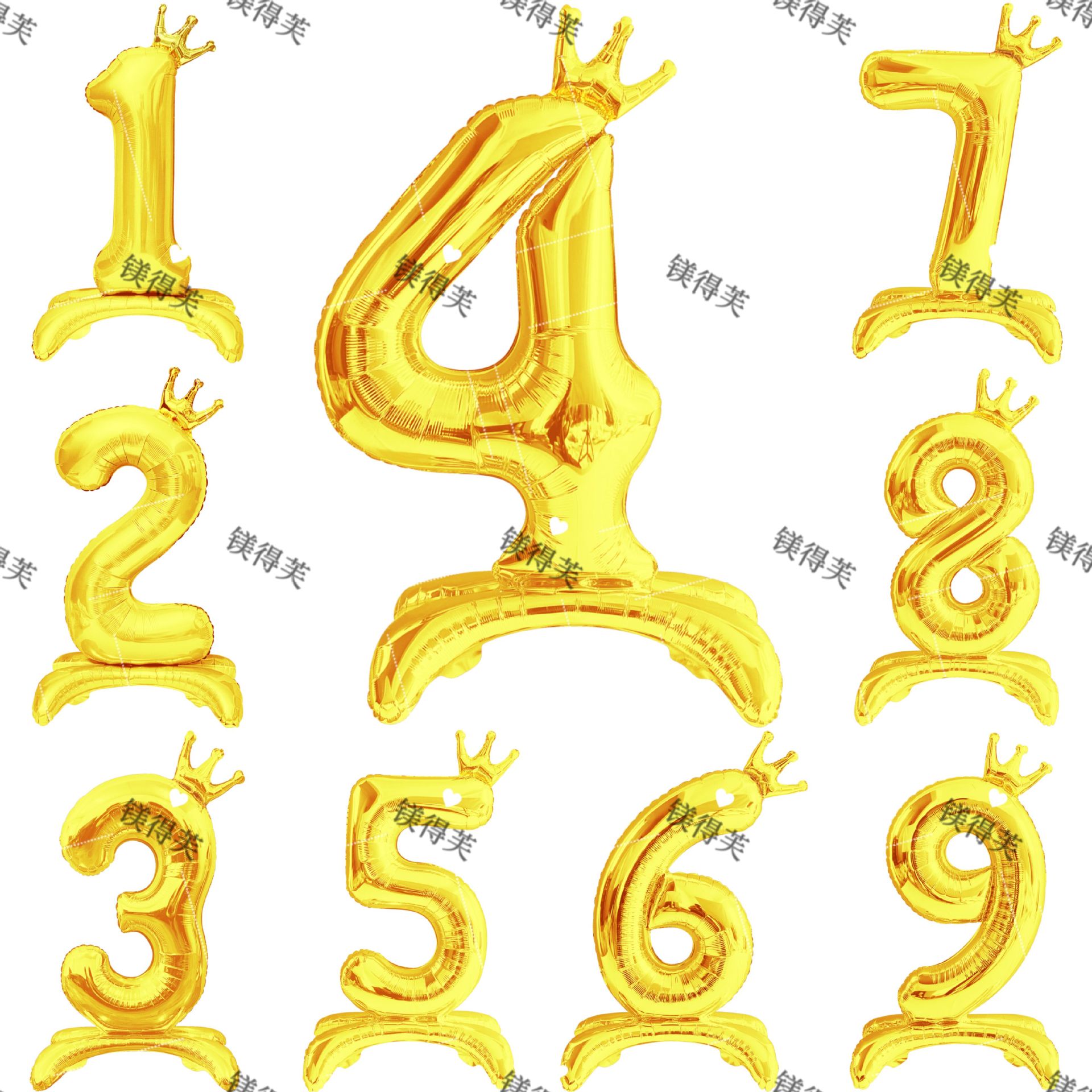 新しい金色の32インチのクラウンは数字の風船に立っています。