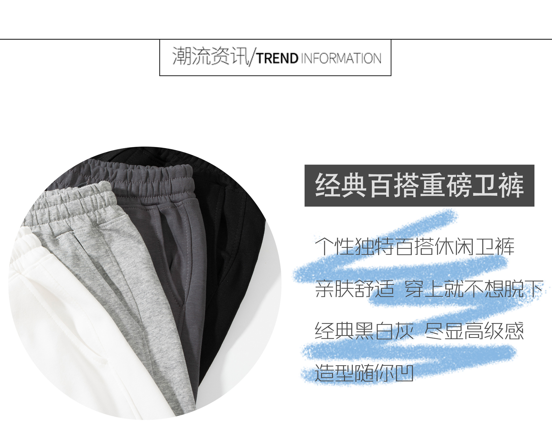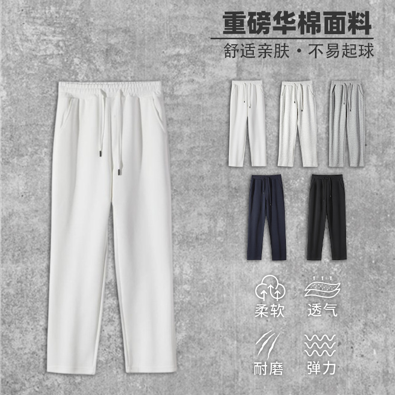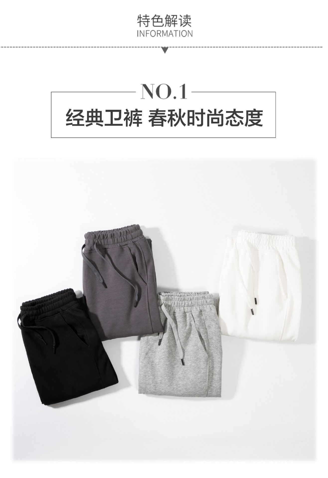 320g华棉阔脚卫裤春秋款男同款纯色宽松裤子休闲裤直筒平口长裤