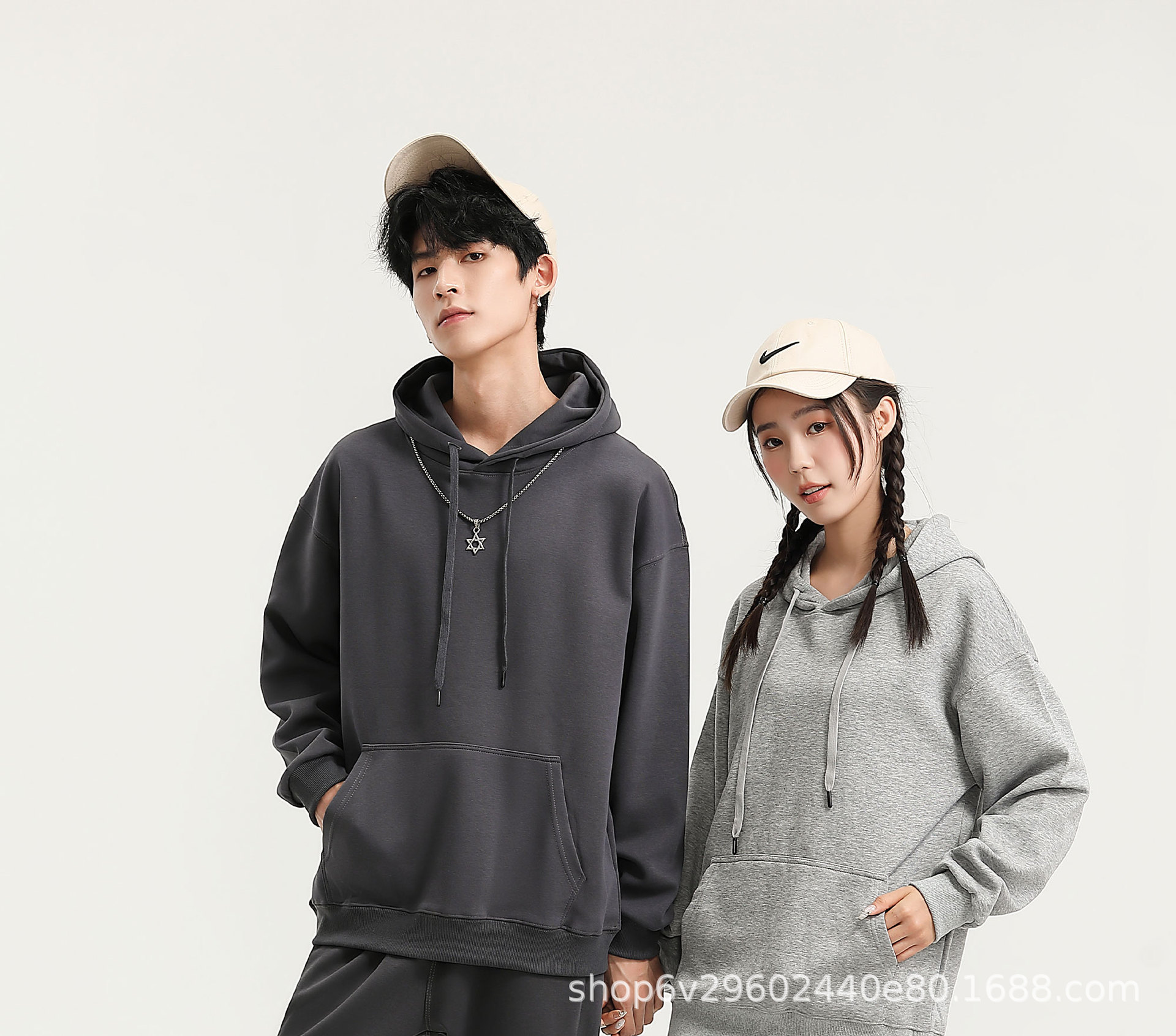 クロスボーダーアメリカンルーズストリートメンズトレンディブランド無地フード付き混綿両面スウェットシャツレディース韓国風カジュアル長袖秋