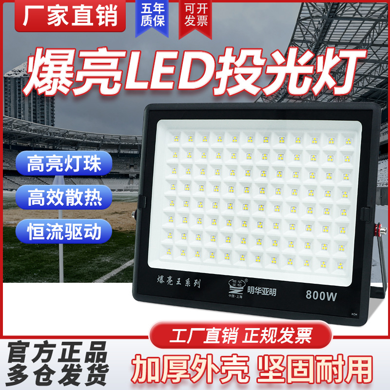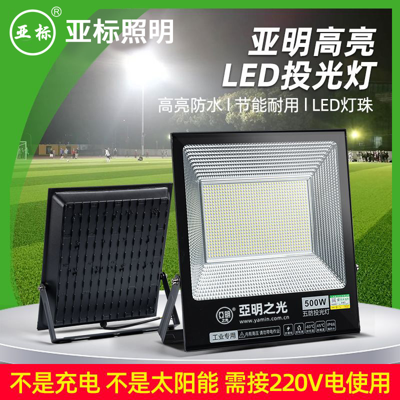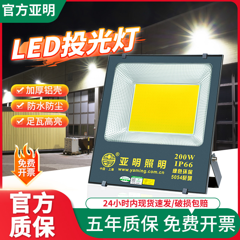 正品亜明LED投光灯屋外防水強光工場灯大出力サーチライト工事現場灯庭灯