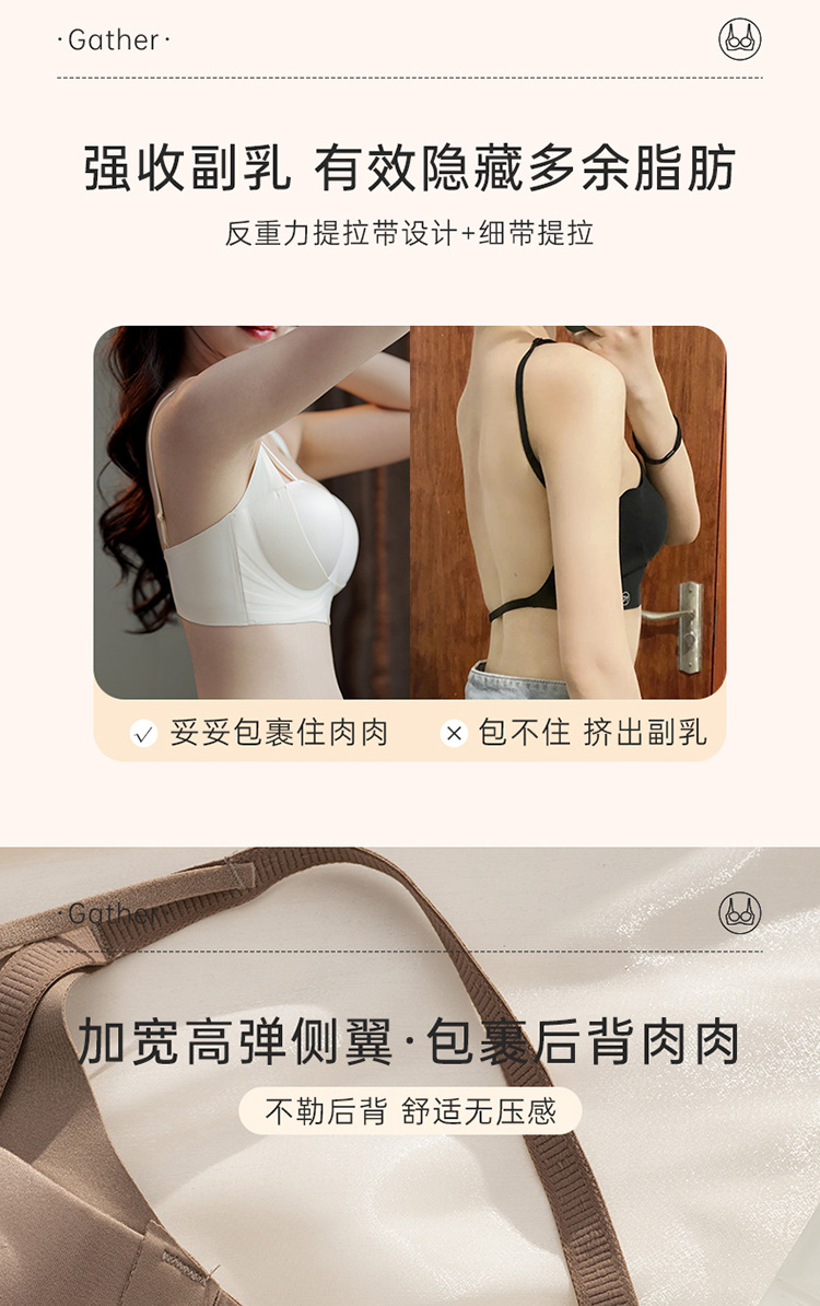 運動の背心式のブラジャーの中に高級な無痕の透かしをつけて副乳を収めて水のコップの下着の女性の2025新型を集めます。