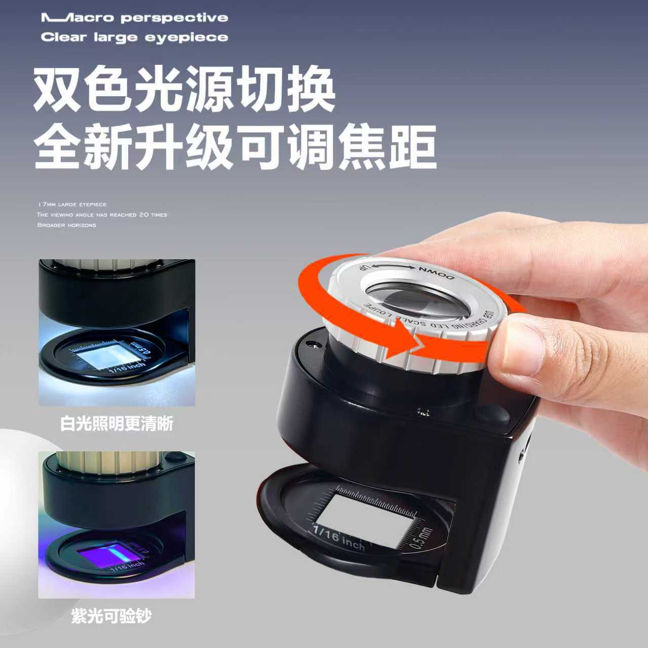 30倍放大镜可调焦距带刻度带灯紫色光字画珠宝玉石印刷鉴定充电