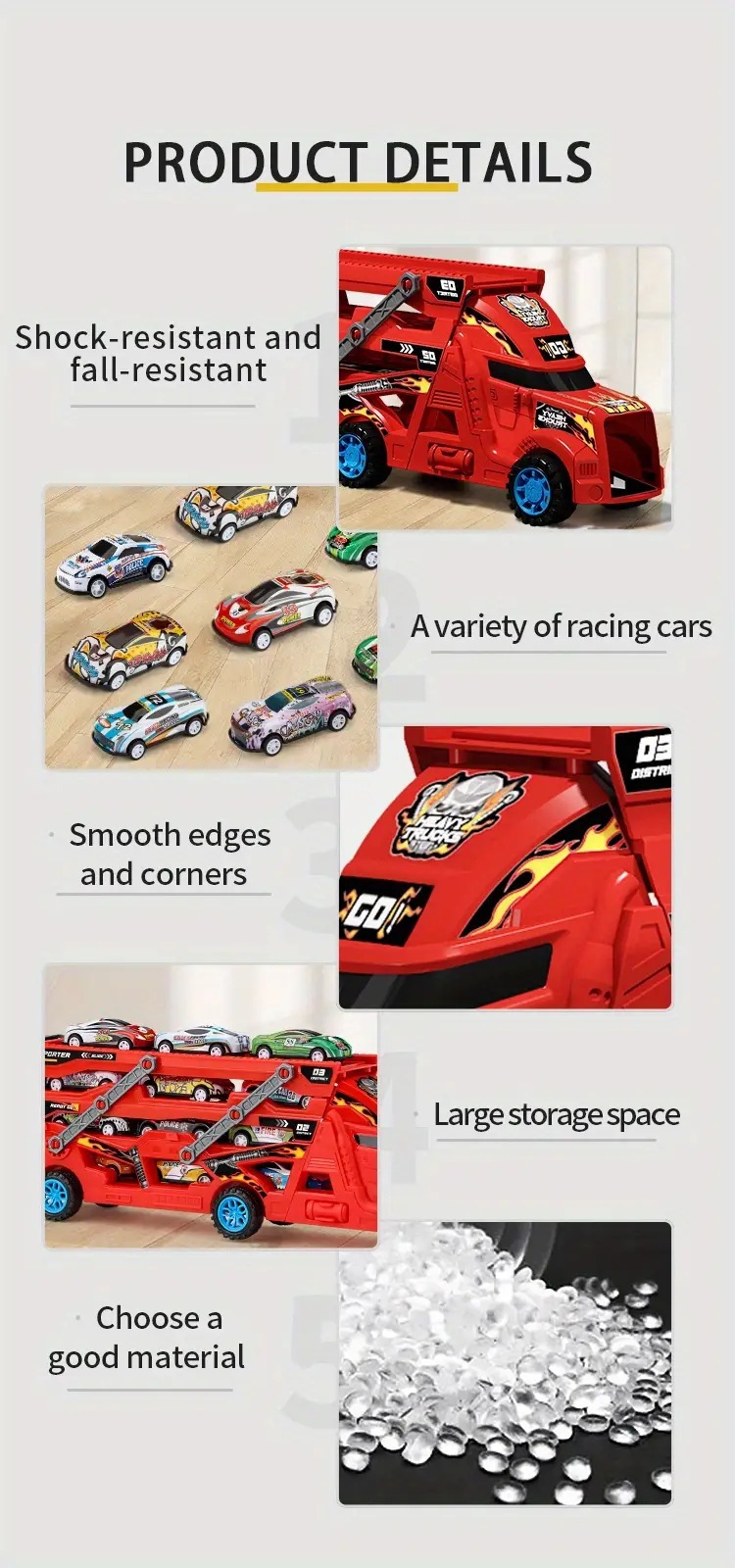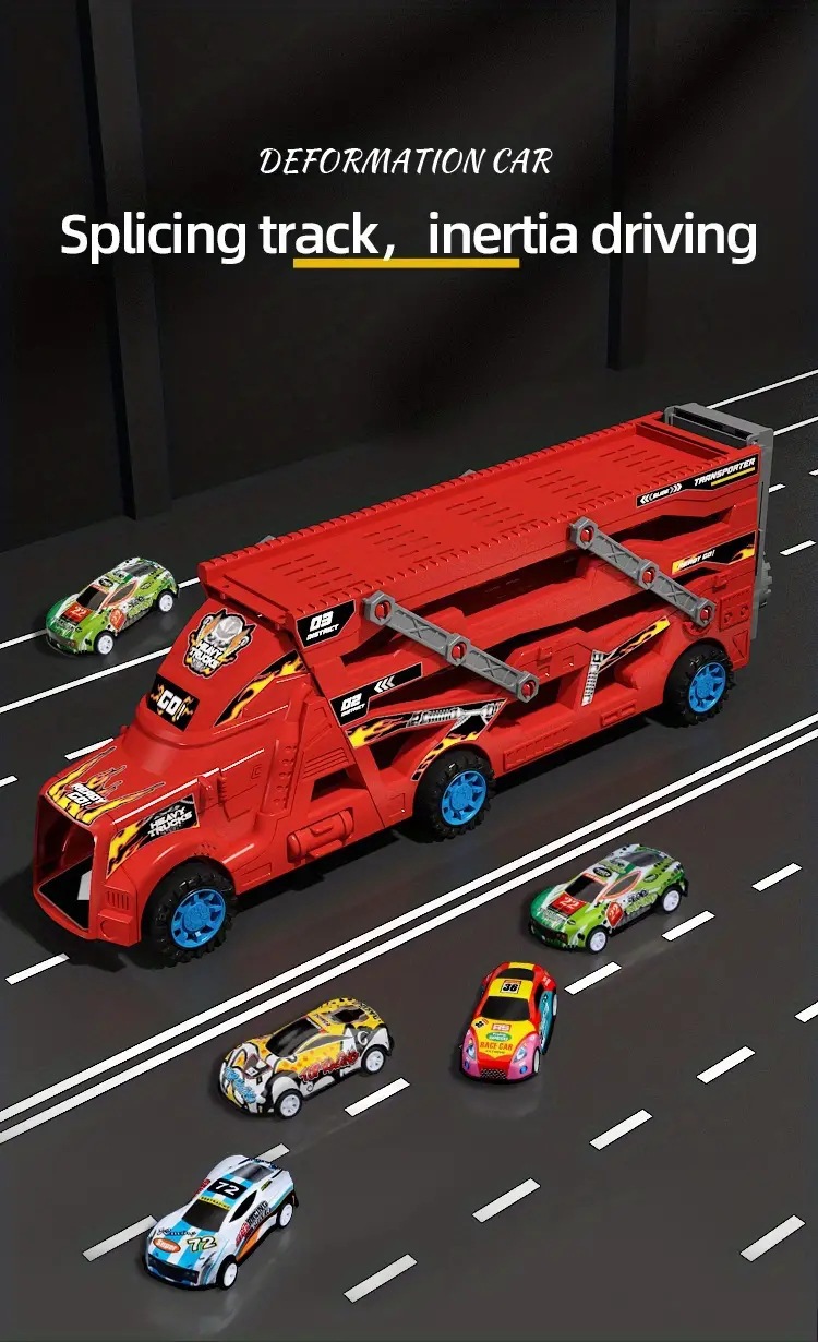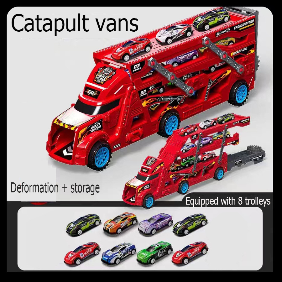 国境を越える変形射出式おもちゃの車、折りたたみ式輸送トラック、収納式リターンパワー合金車、男の子向けおもちゃの車