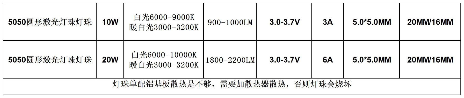 ハイパワーLED 3V 5050平面電球5050レーザー電球10W20W白色光暖白溶接銅基板