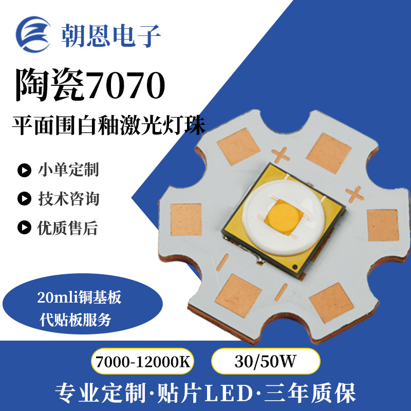 60Wハイパワー7070平面ランプビーズ7070白レーザー電球レーザー砲三安チップ溶接銅基板