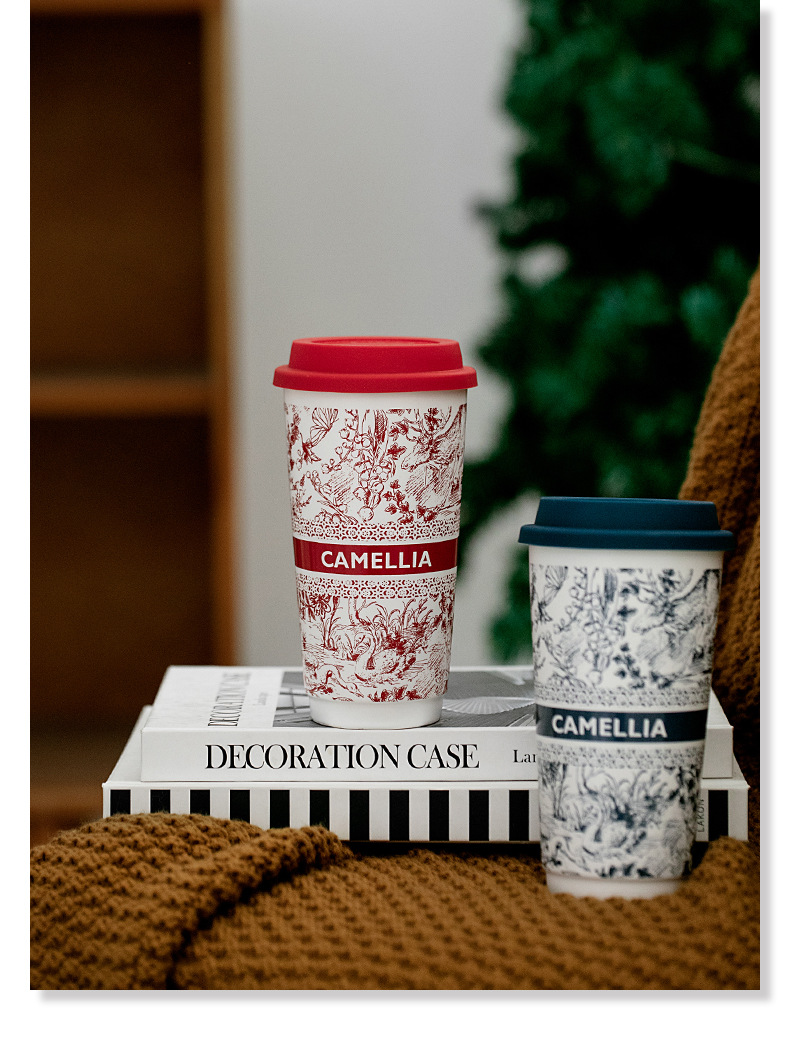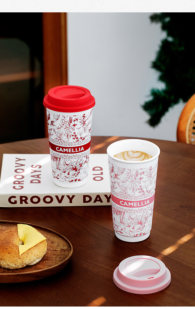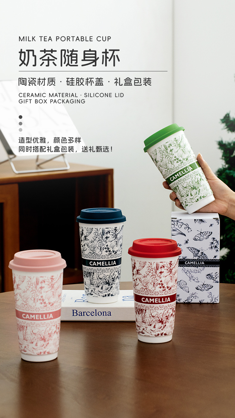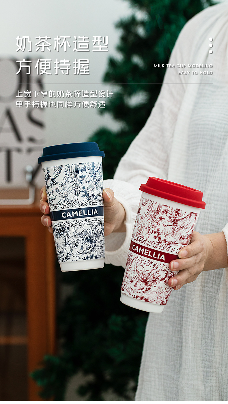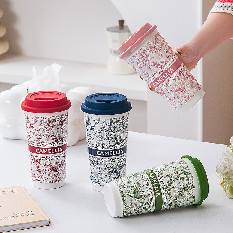 ミルクティーのコップの国風の陶磁器のコップは蓋の高い顔の値のネットの赤いコップの家庭の大容量の携帯の牛乳のコップを持ちます。