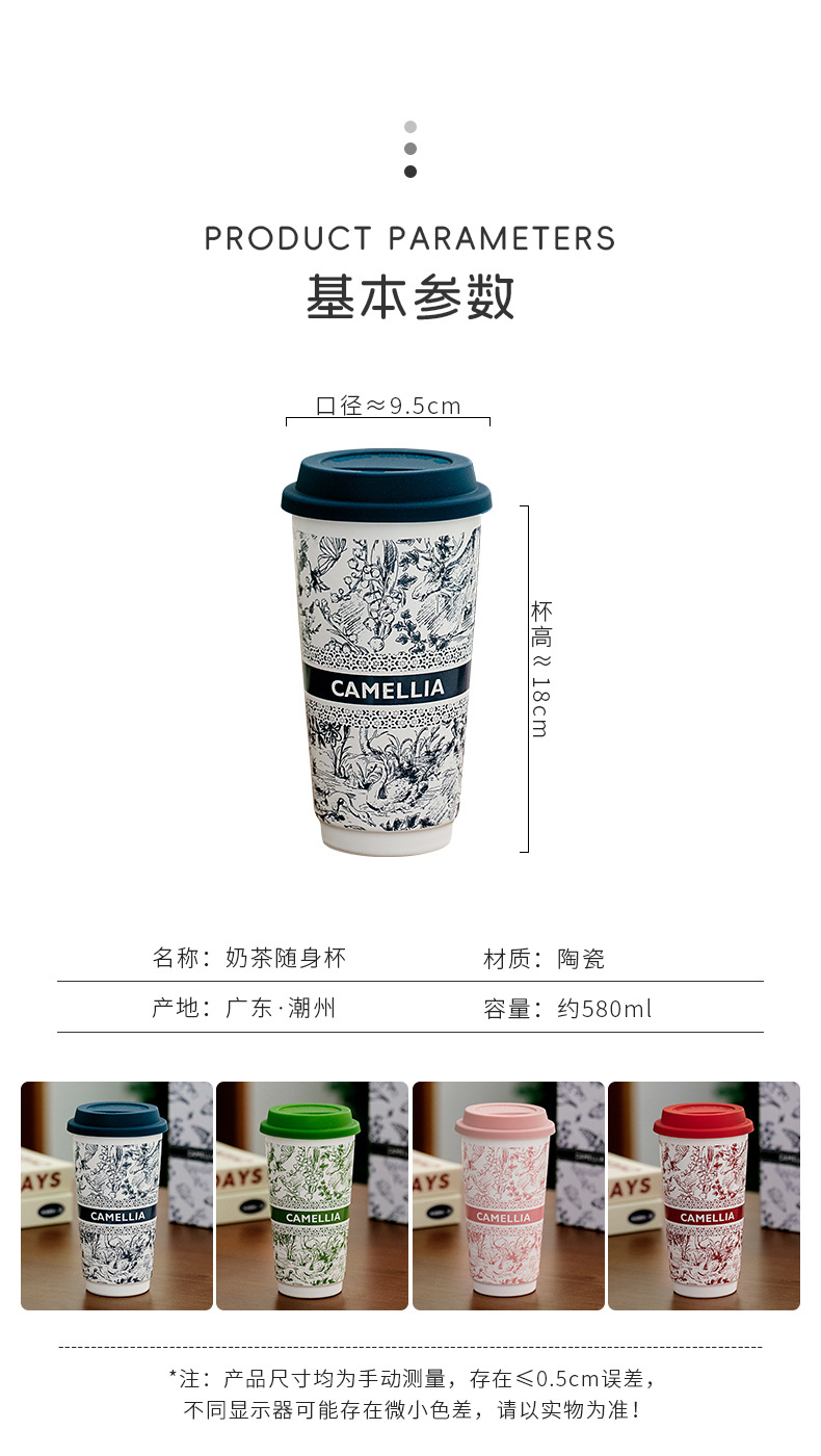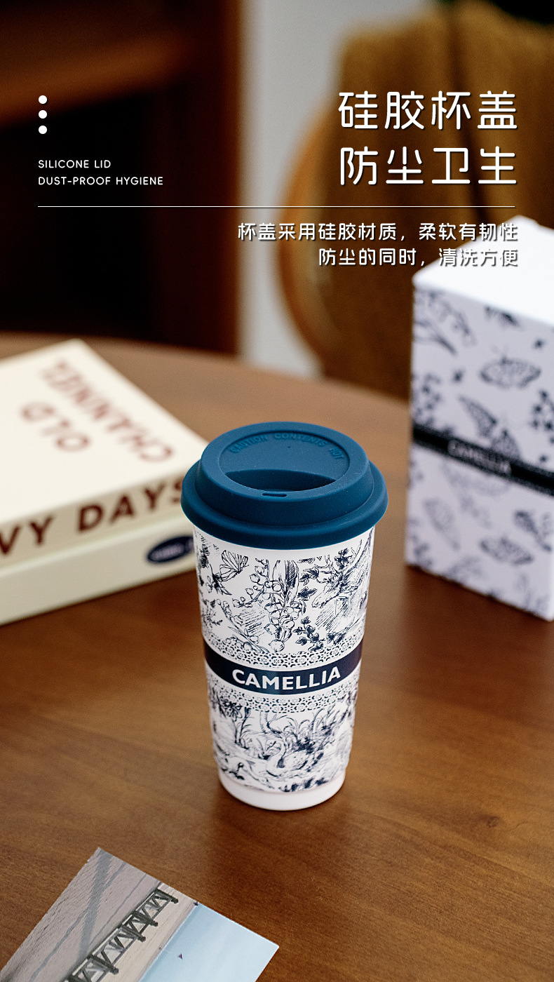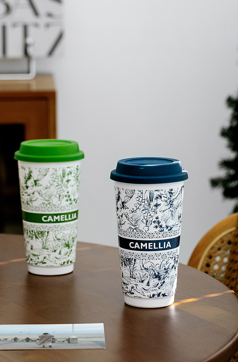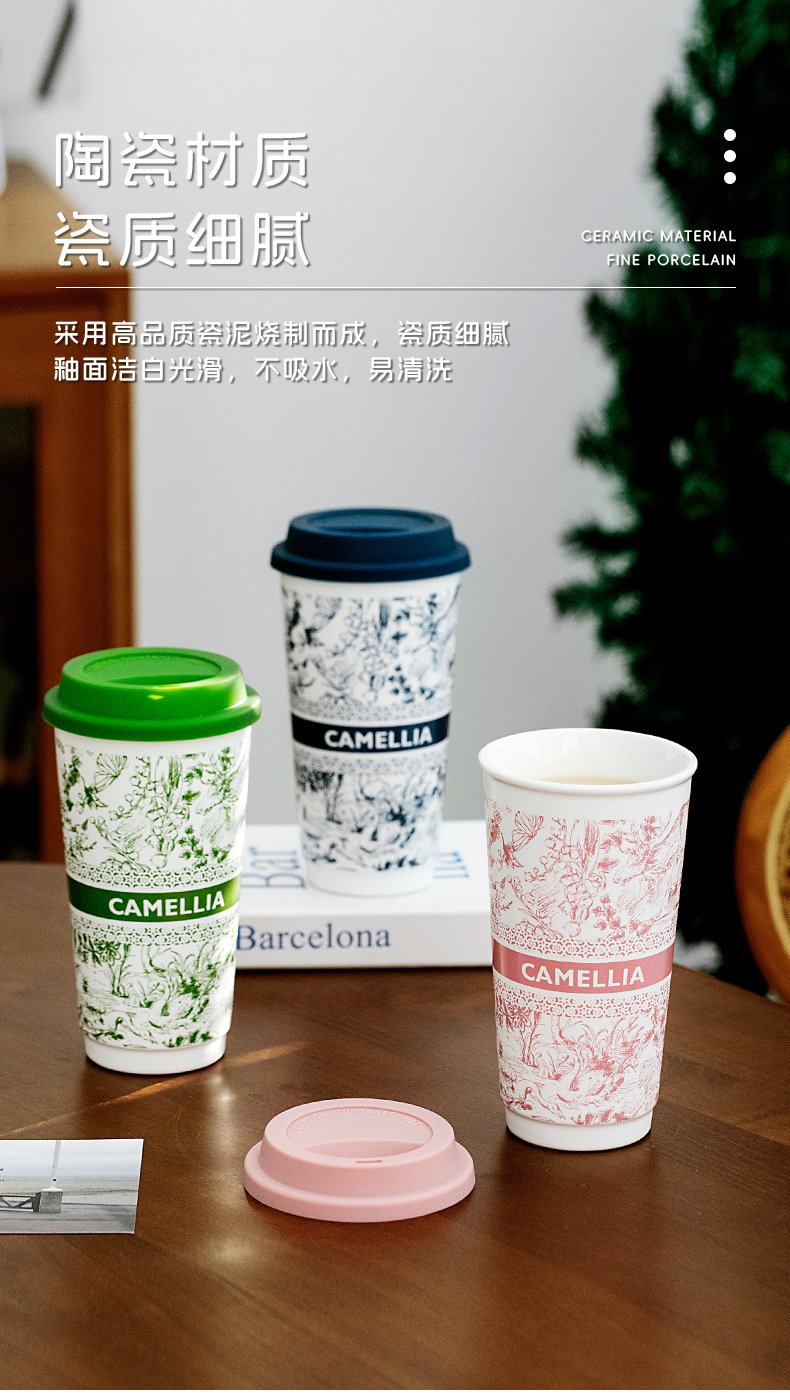 ミルクティーのコップの国風の陶磁器のコップは蓋の高い顔の値のネットの赤いコップの家庭の大容量の携帯の牛乳のコップを持ちます。