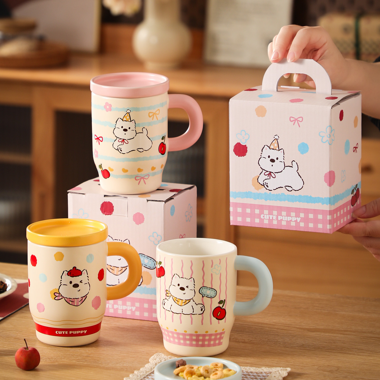 高颜値かわいい漫画子犬カップル陶磁器カップマグカップコーヒーお茶カップお土産