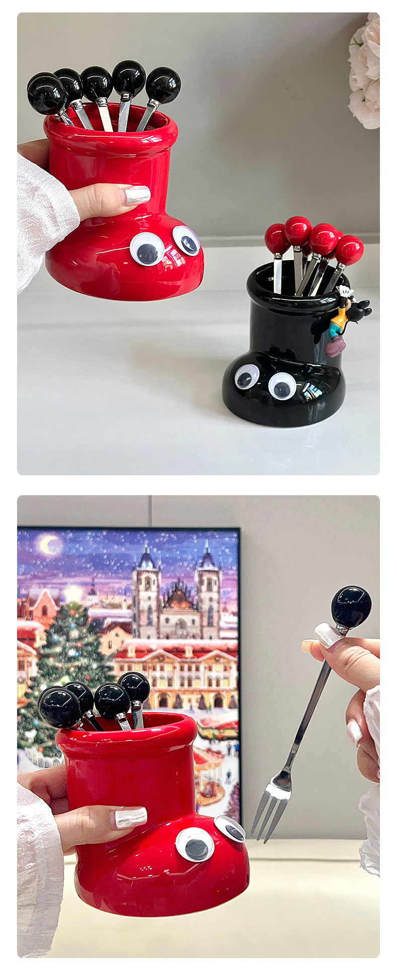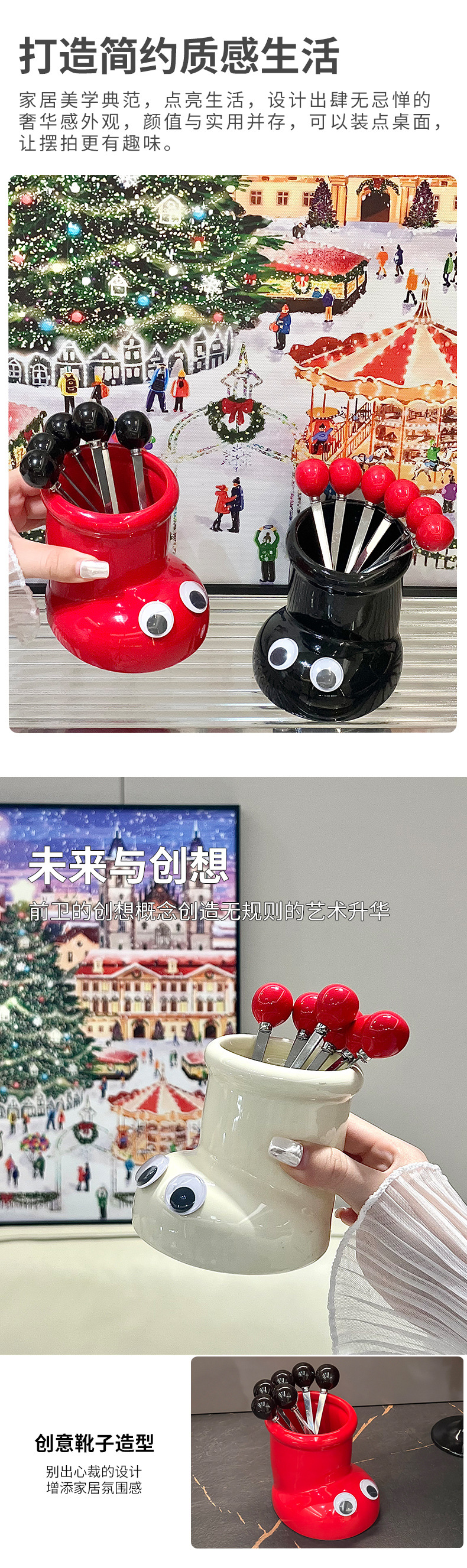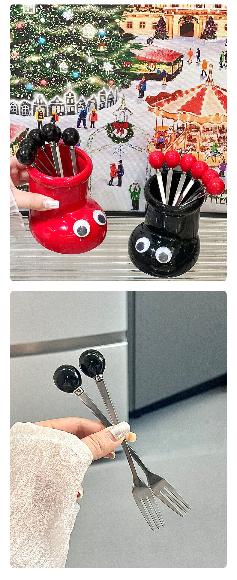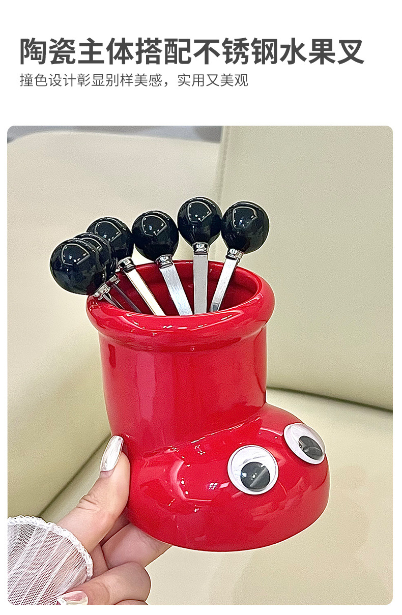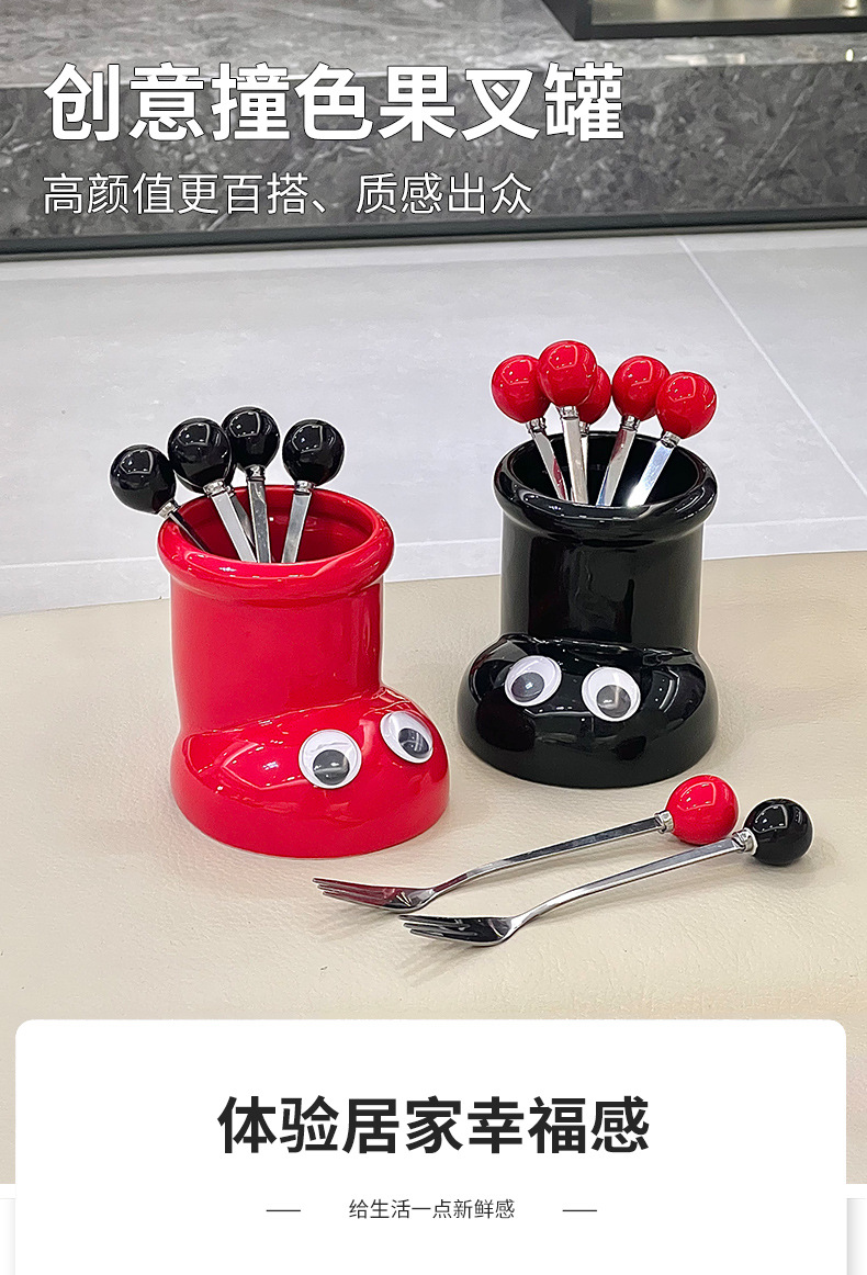 6圆珠叉子—米色、红色、黑色 下游限价28.8