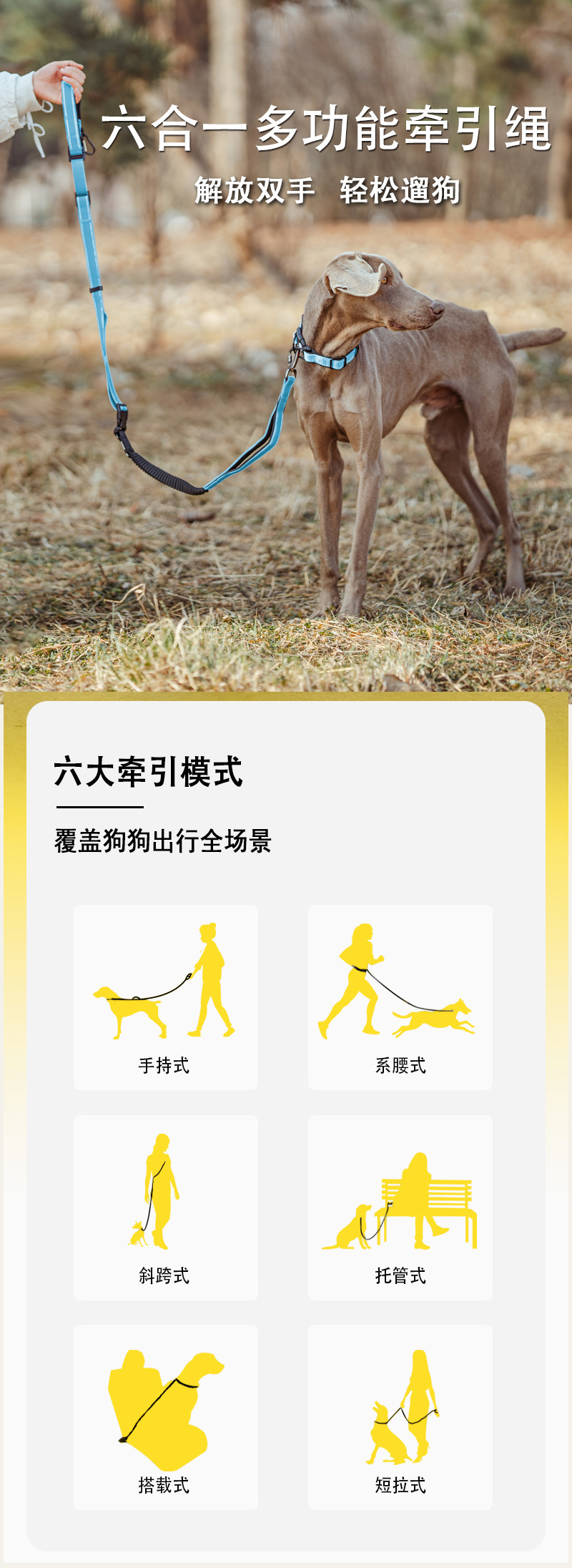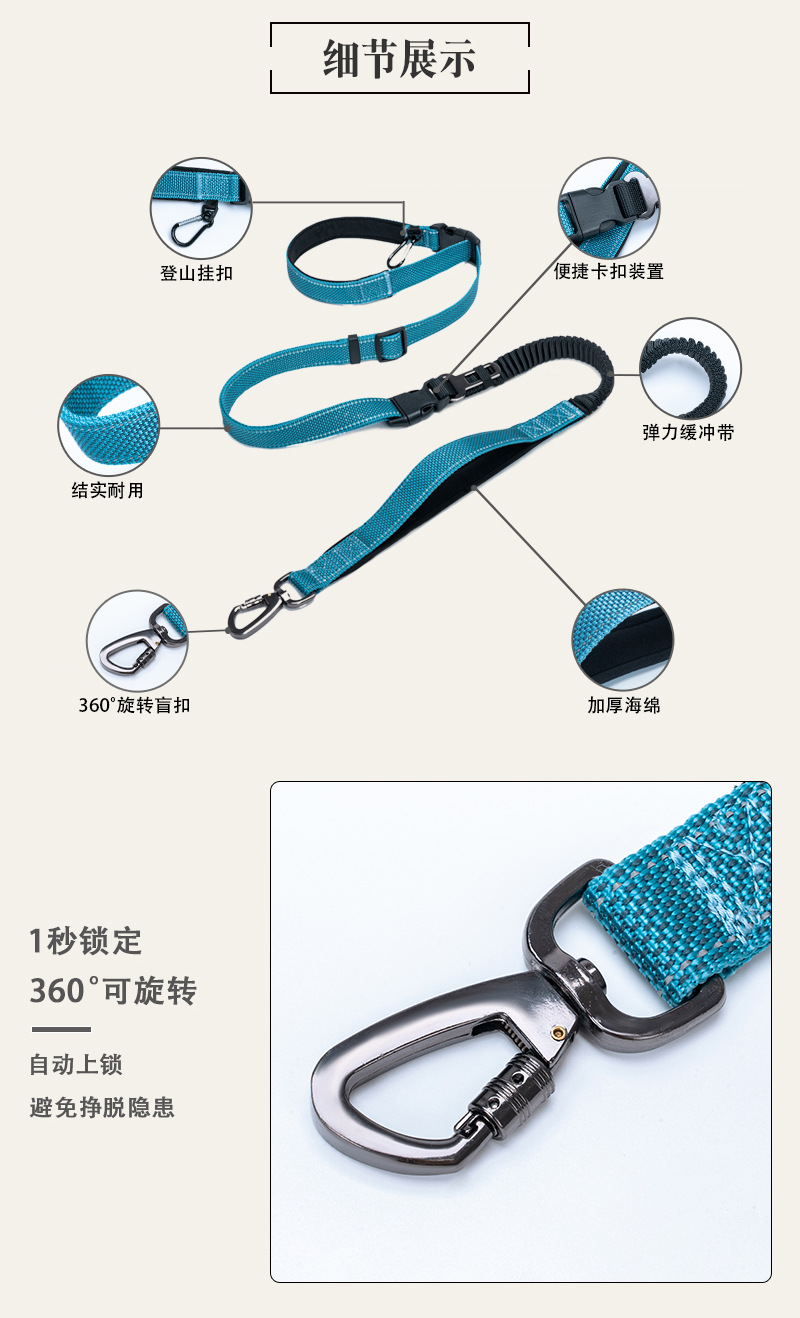 国境を越えたペット用品は夜に犬の牽引紐を走る多機能腰に犬のひもを引っ張って散歩する車の安全紐を持っている