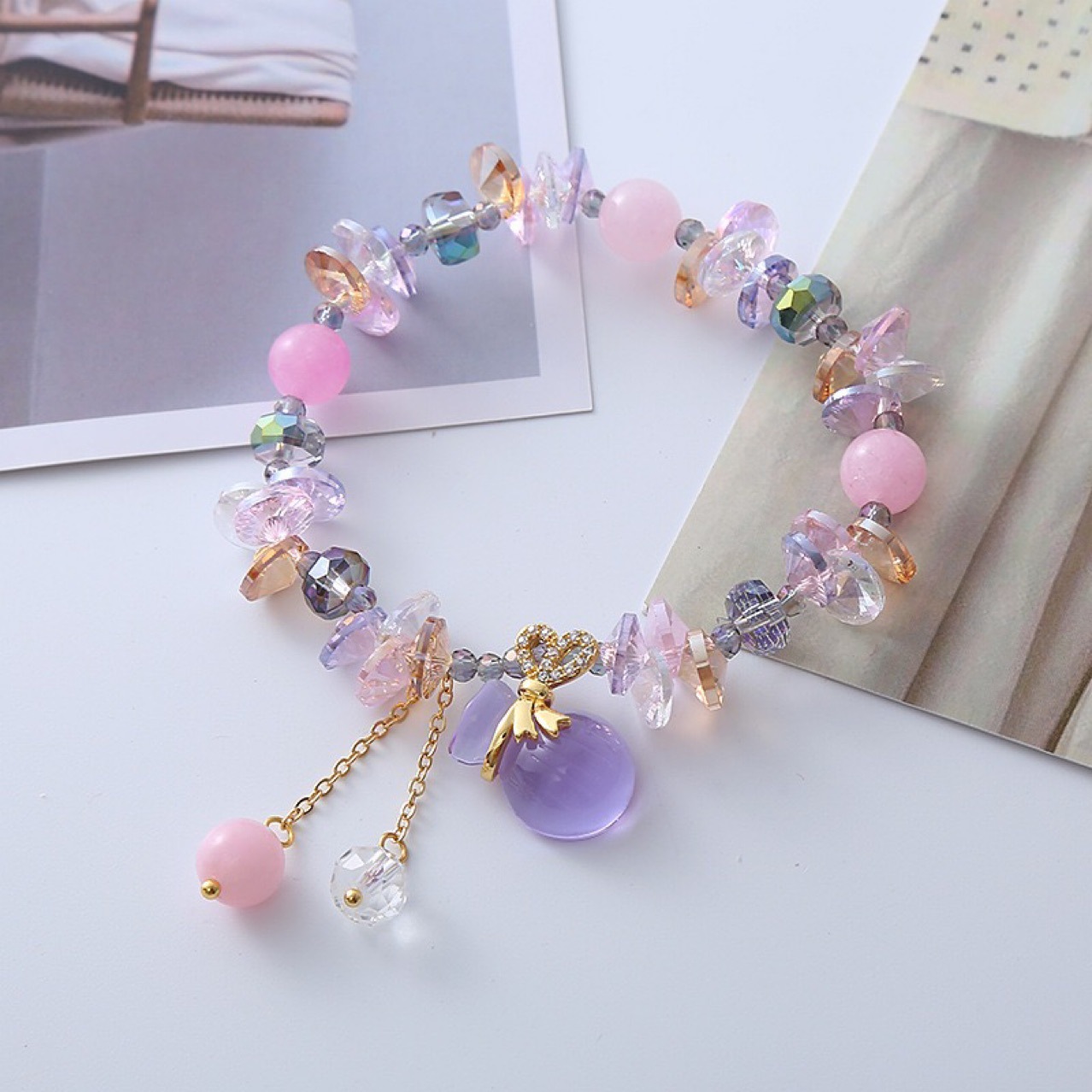 女性用パープルクリスタルブレスレット、サマーセンクールスタイルマネーバッグペンダント、軽くて豪華なレトロブレスレット、ガールフレンドや親友へのギフトとして