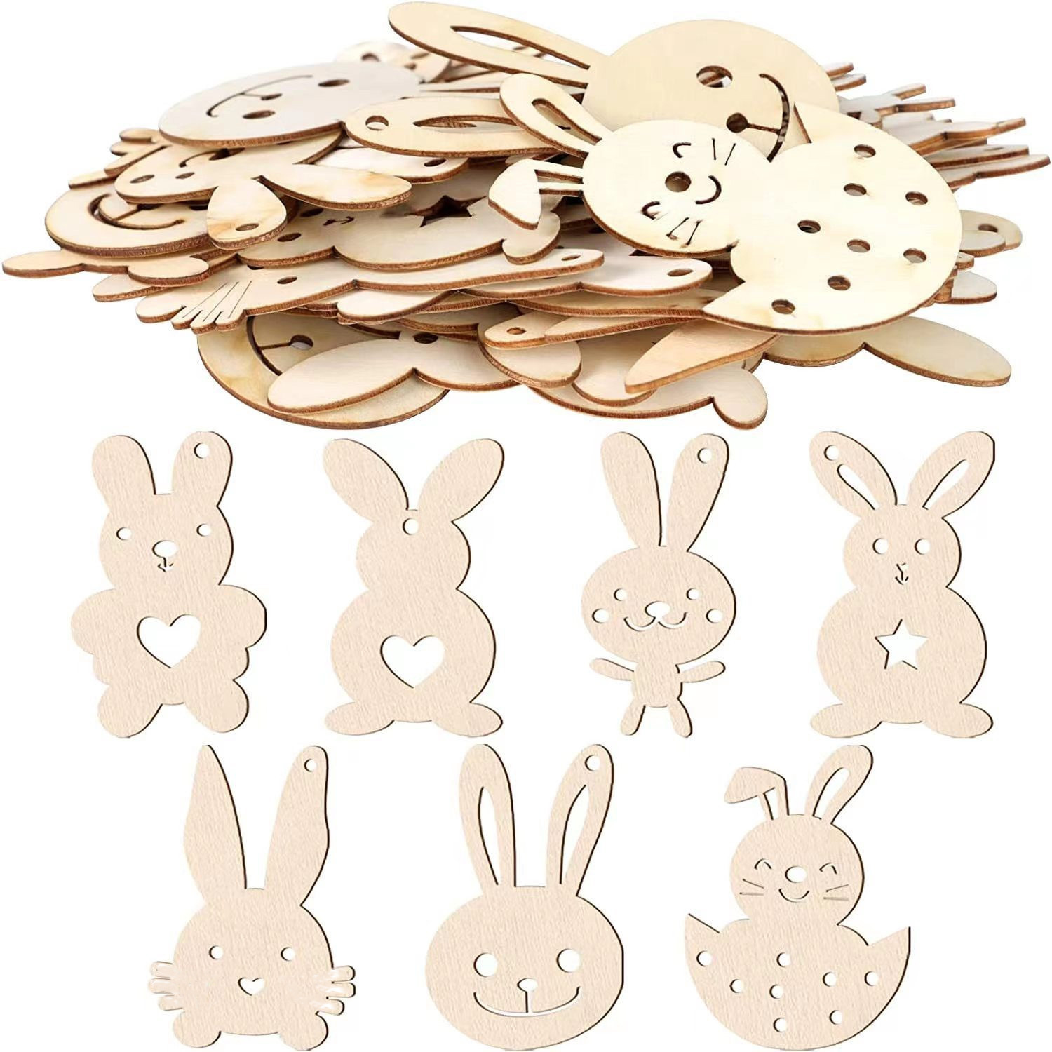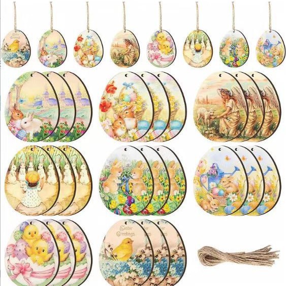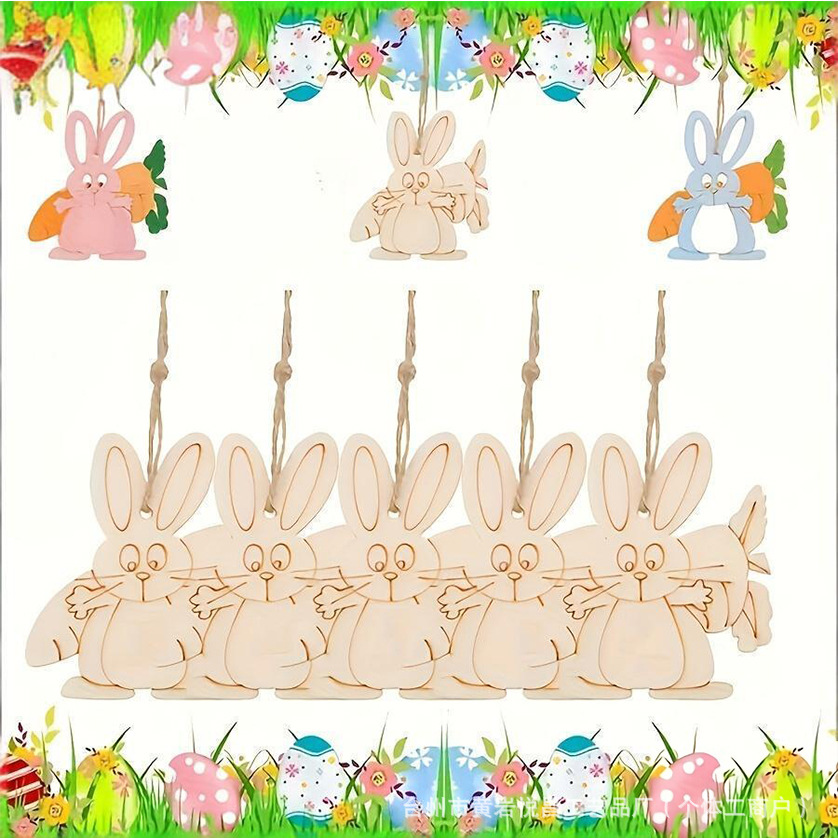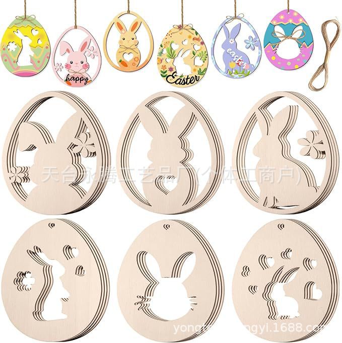 复活节DIY木片木质挂件幼儿手绘涂鸦激光切割空白木片复活节装饰