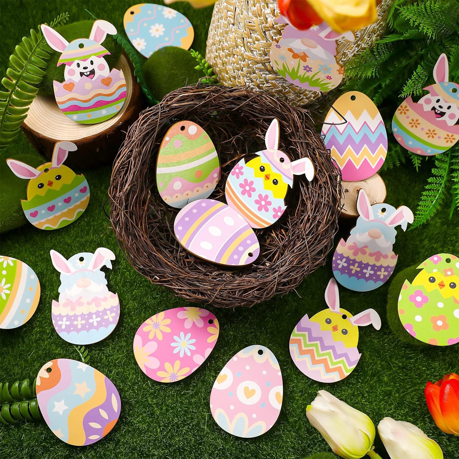イースターツリー装飾24個イースター木製装飾は室内家庭マント暖炉パーティー装飾に適している