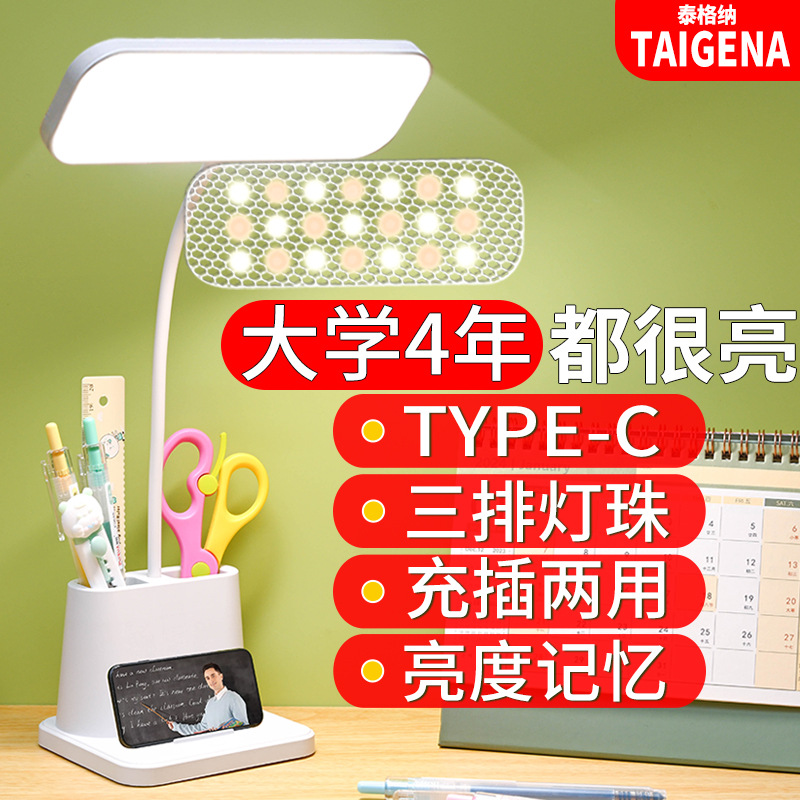 led台灯学生学习护眼阅读灯多功能笔筒台灯充插两用宿舍寝室夜灯